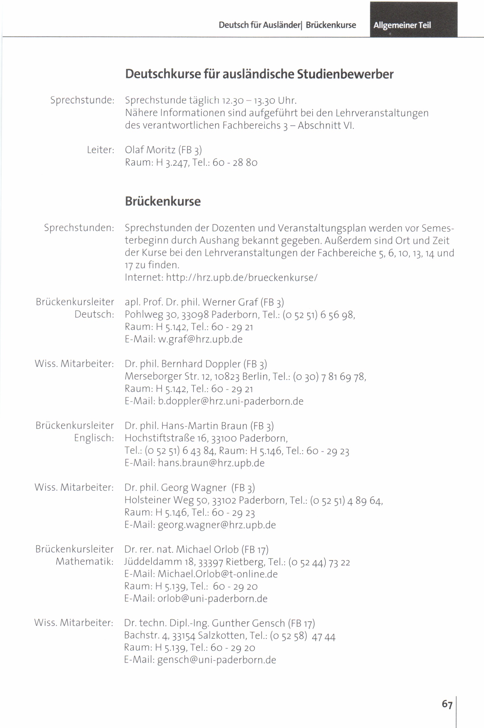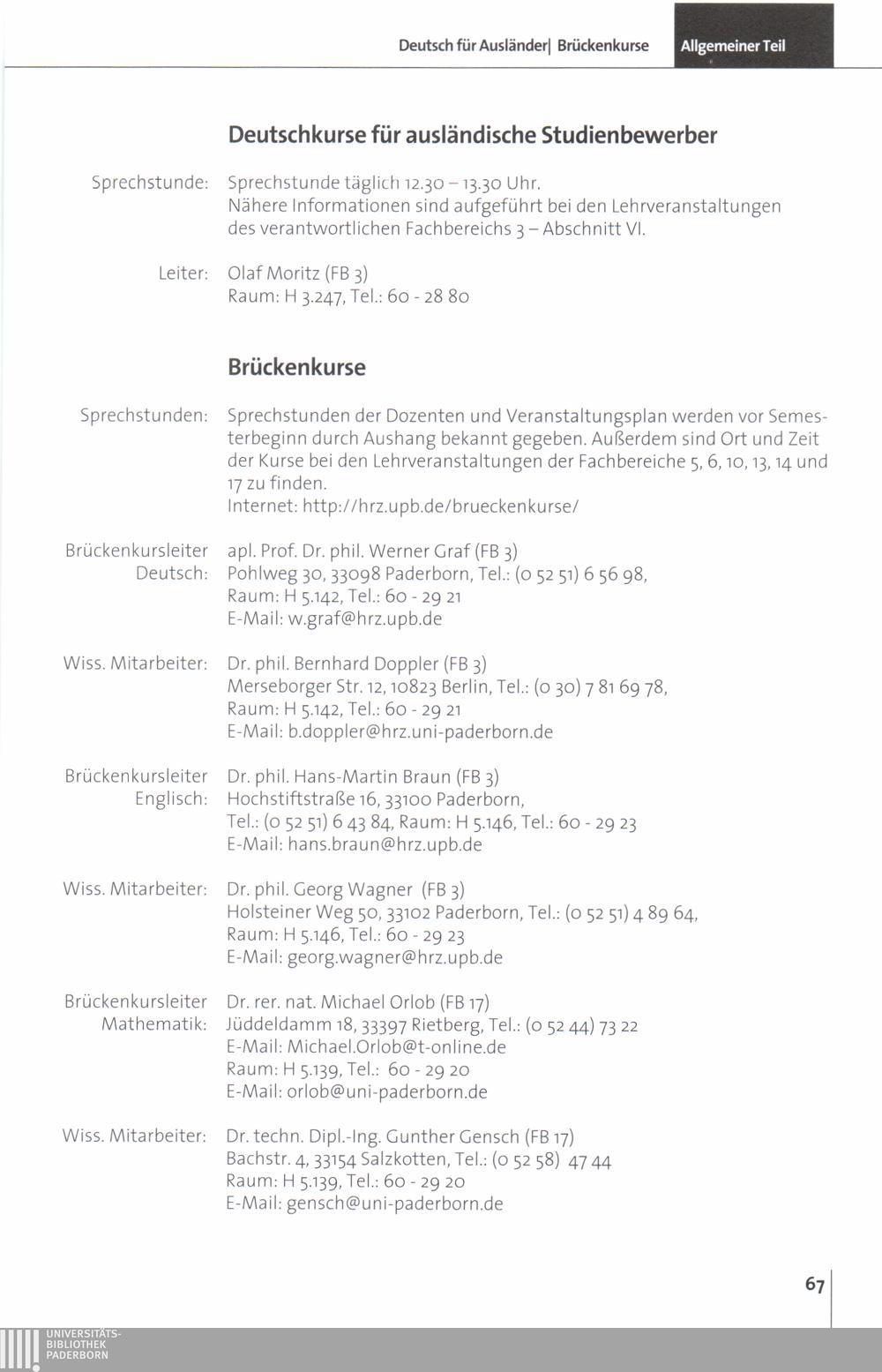 Personal- und Vorlesungsverzeichnis für die Universität Paderborn