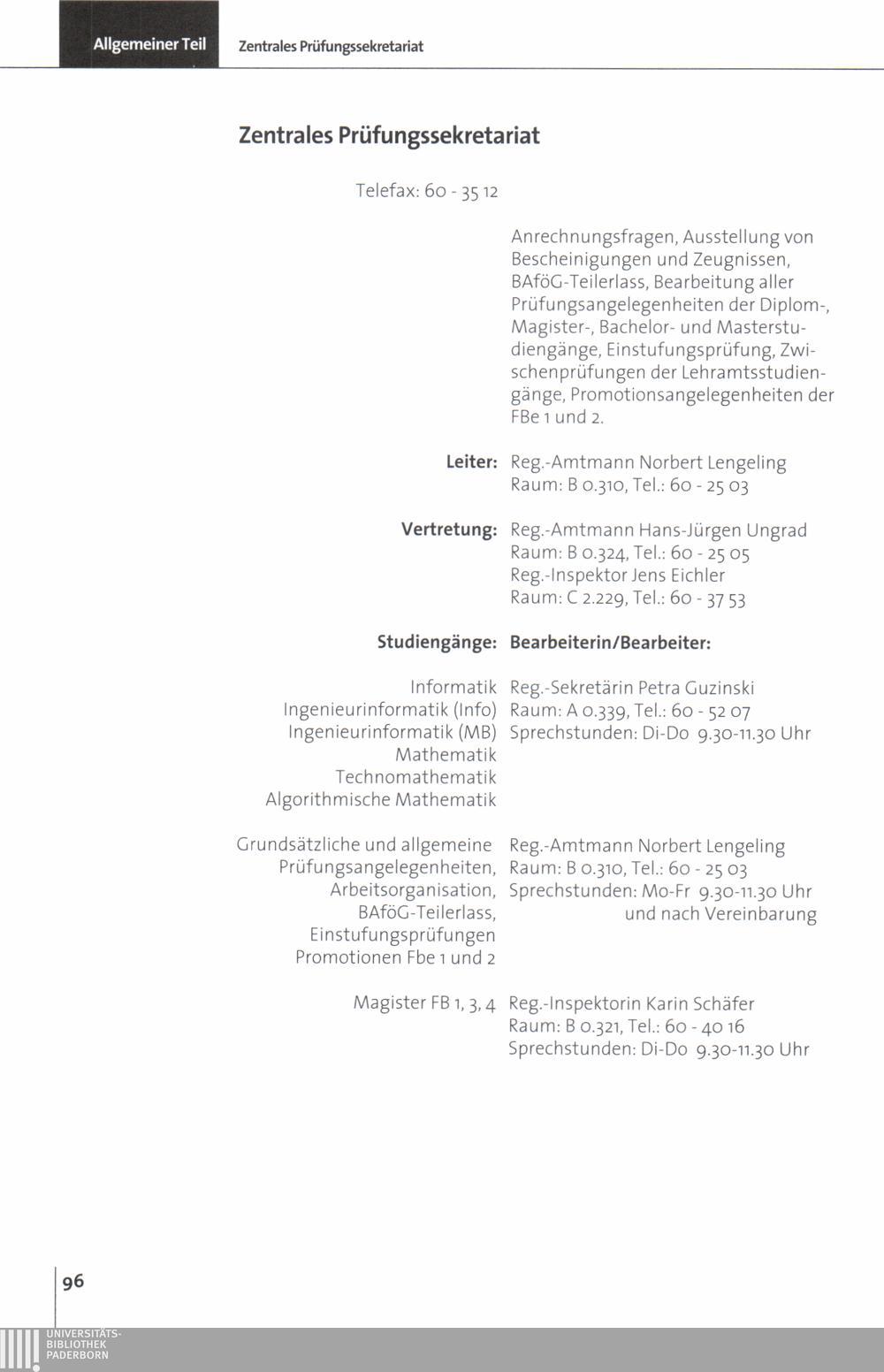 Personal- und Vorlesungsverzeichnis für die Universität Paderborn