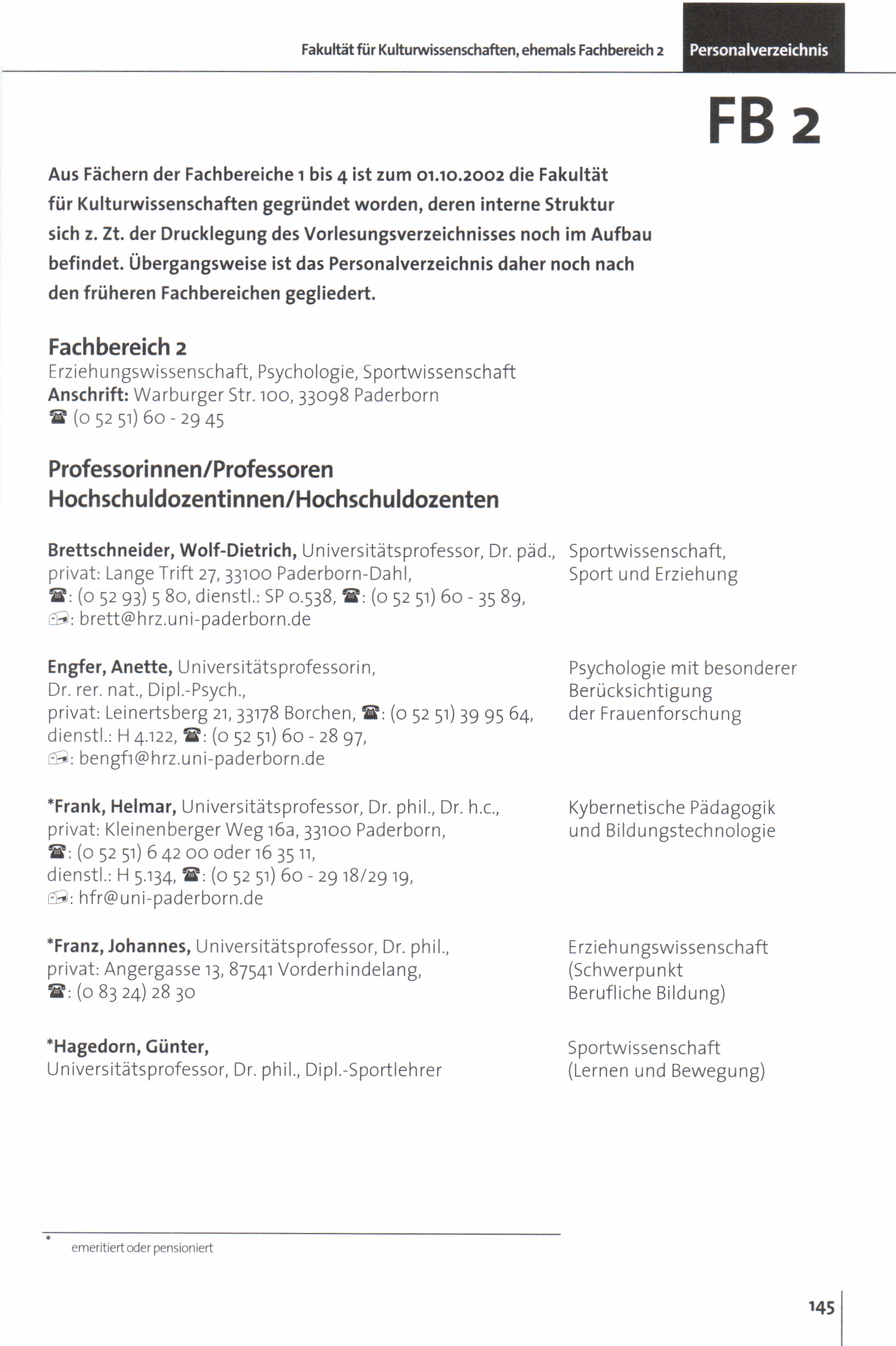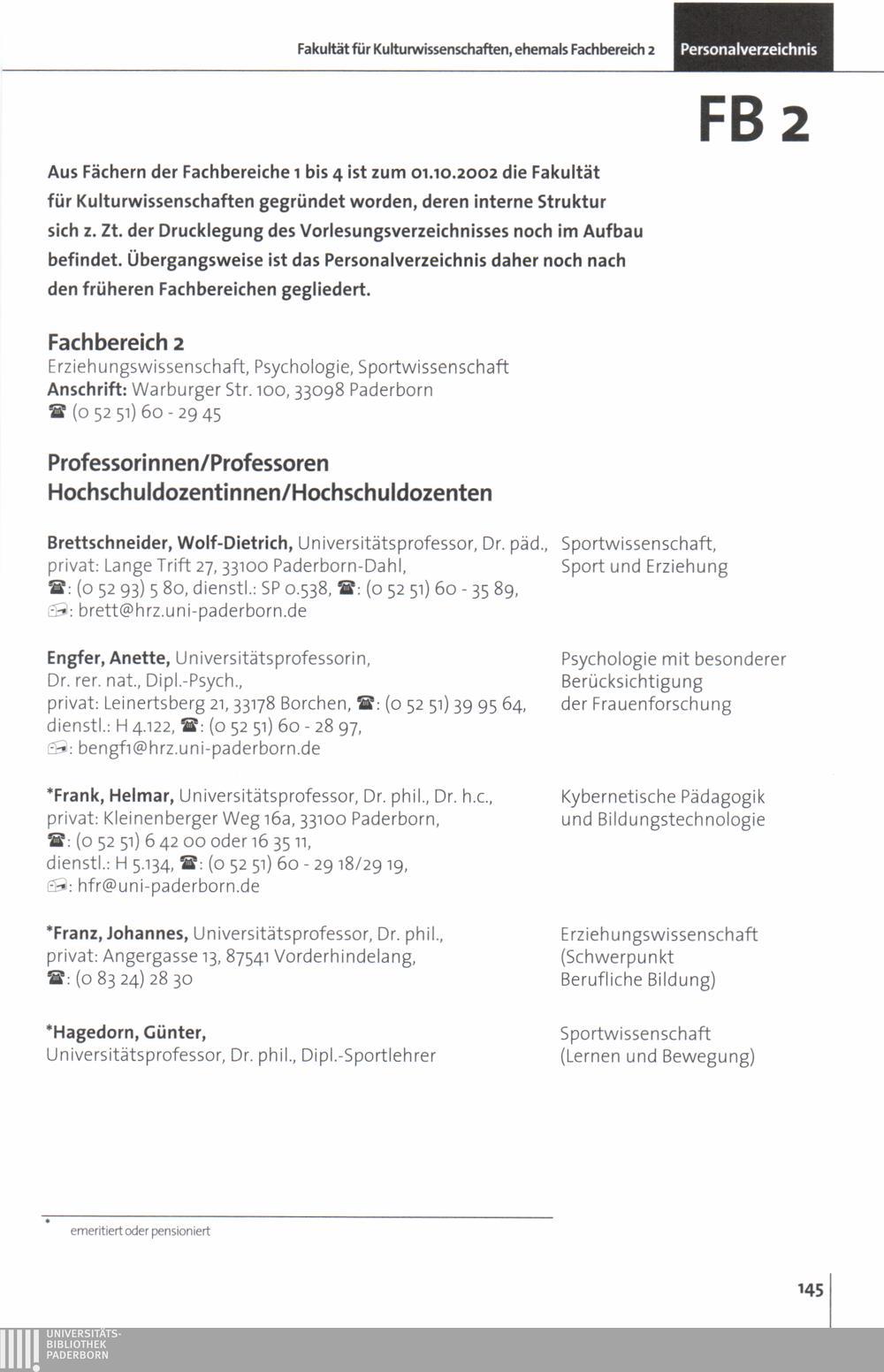 Personal- und Vorlesungsverzeichnis für die Universität Paderborn