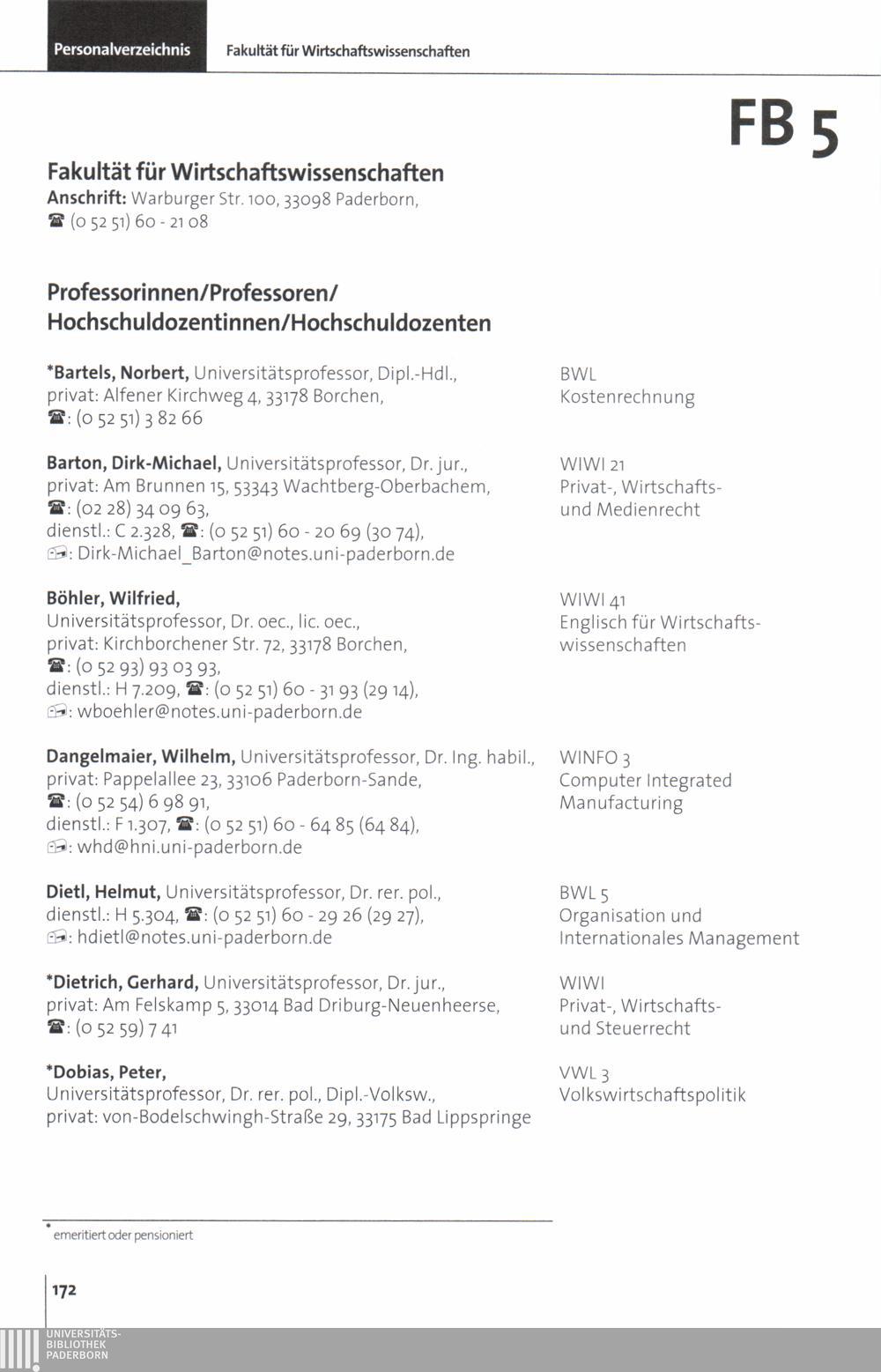 Personal- und Vorlesungsverzeichnis für die Universität Paderborn