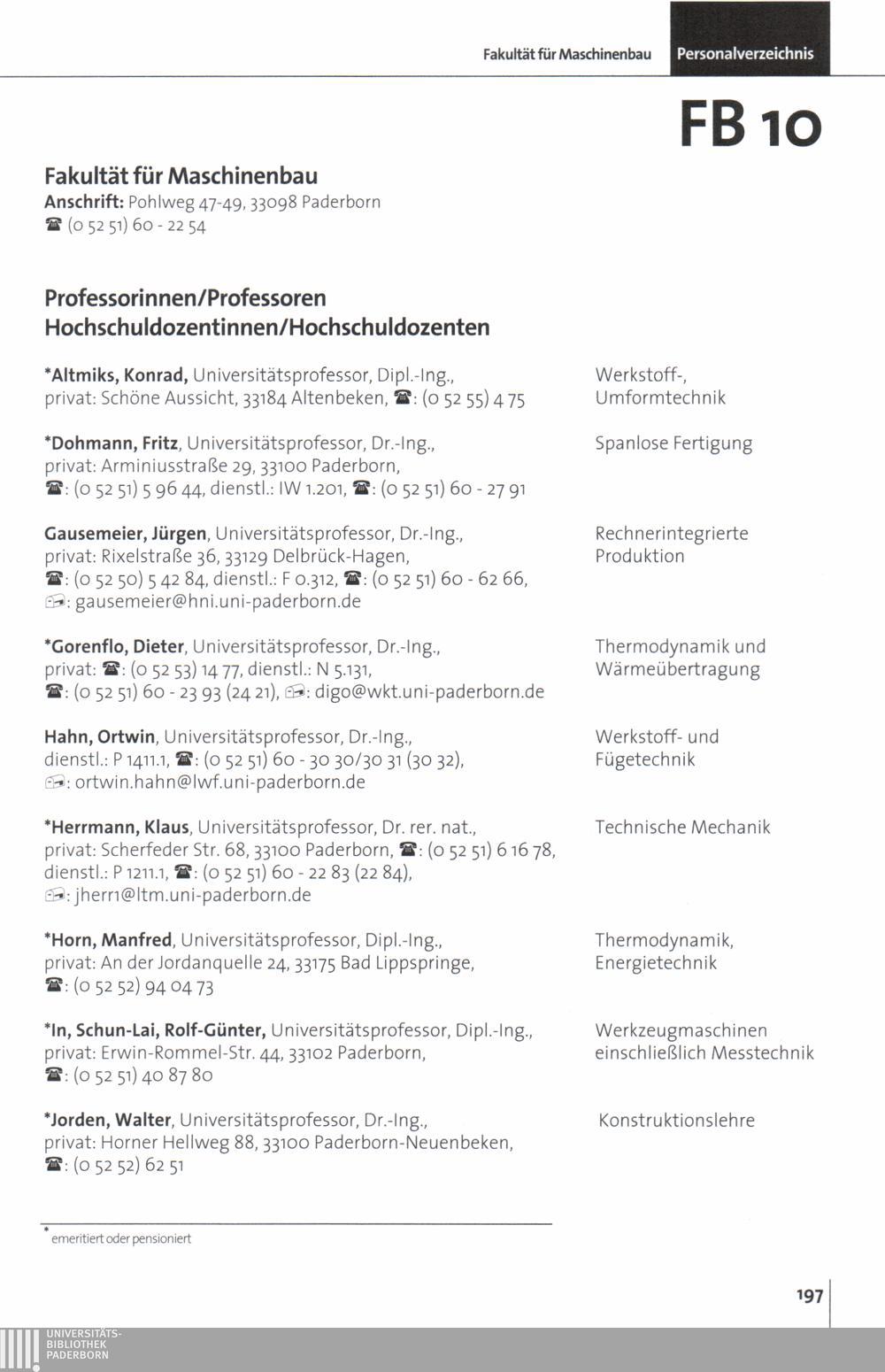 Personal- und Vorlesungsverzeichnis für die Universität Paderborn