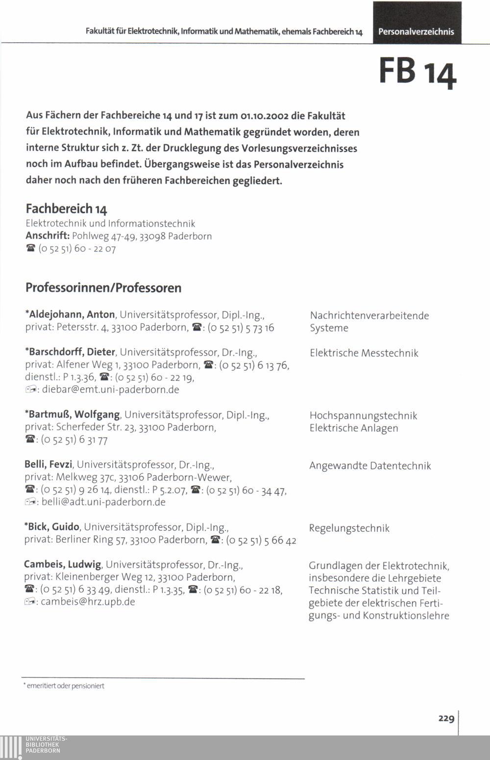 Personal- und Vorlesungsverzeichnis für die Universität Paderborn