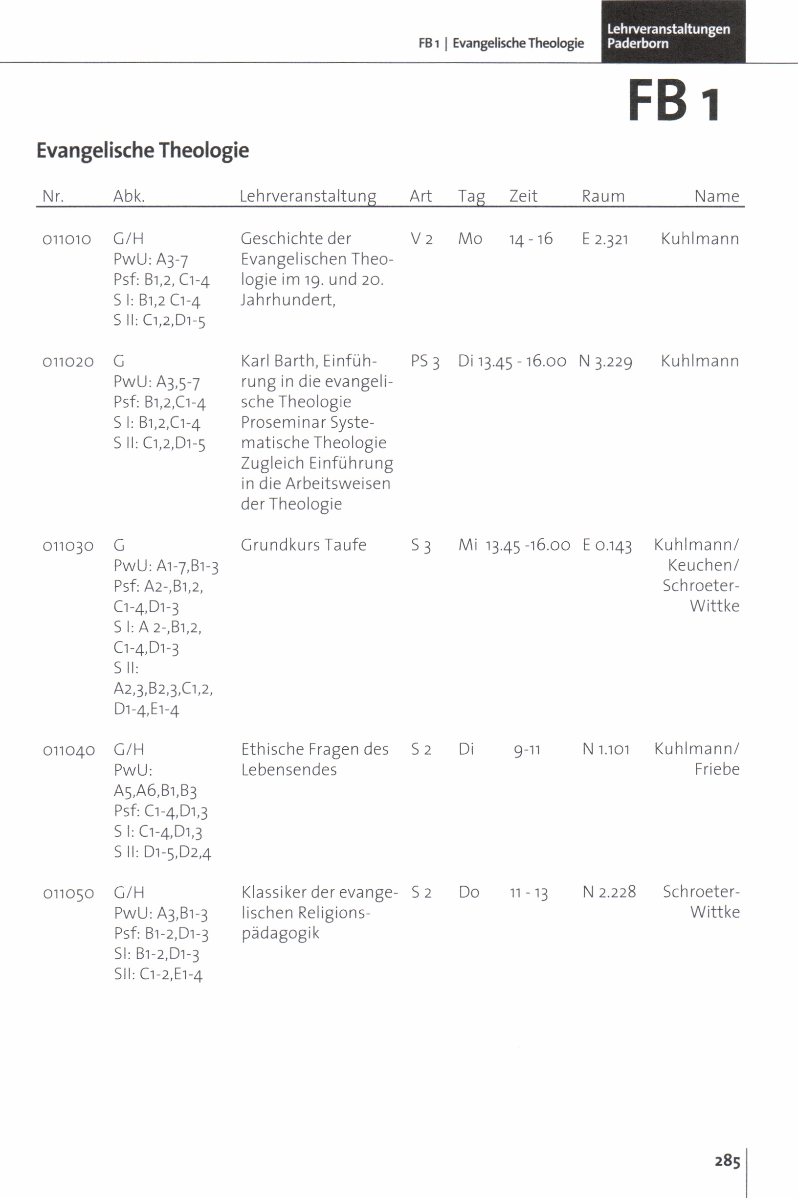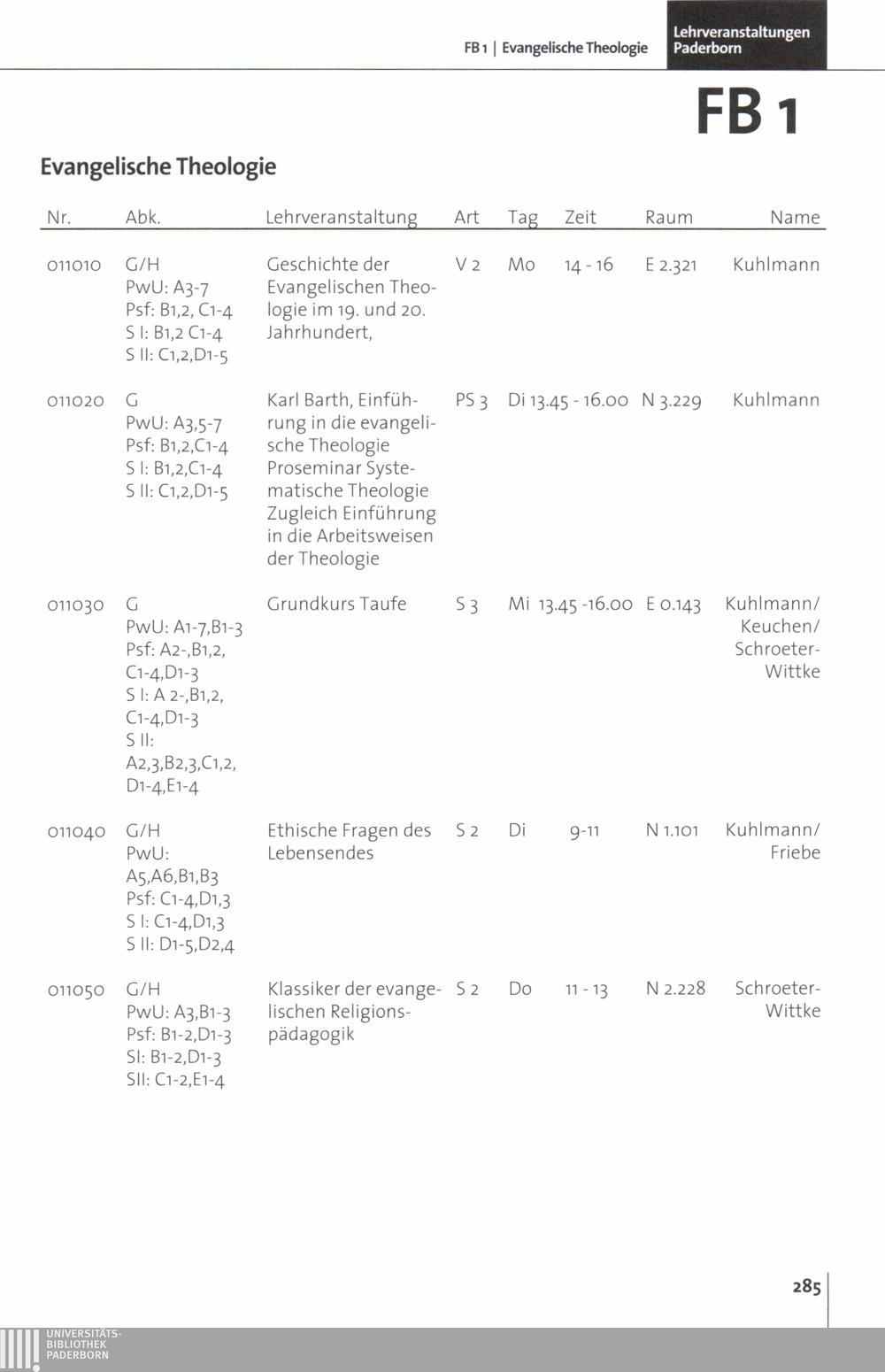 Personal- und Vorlesungsverzeichnis für die Universität Paderborn