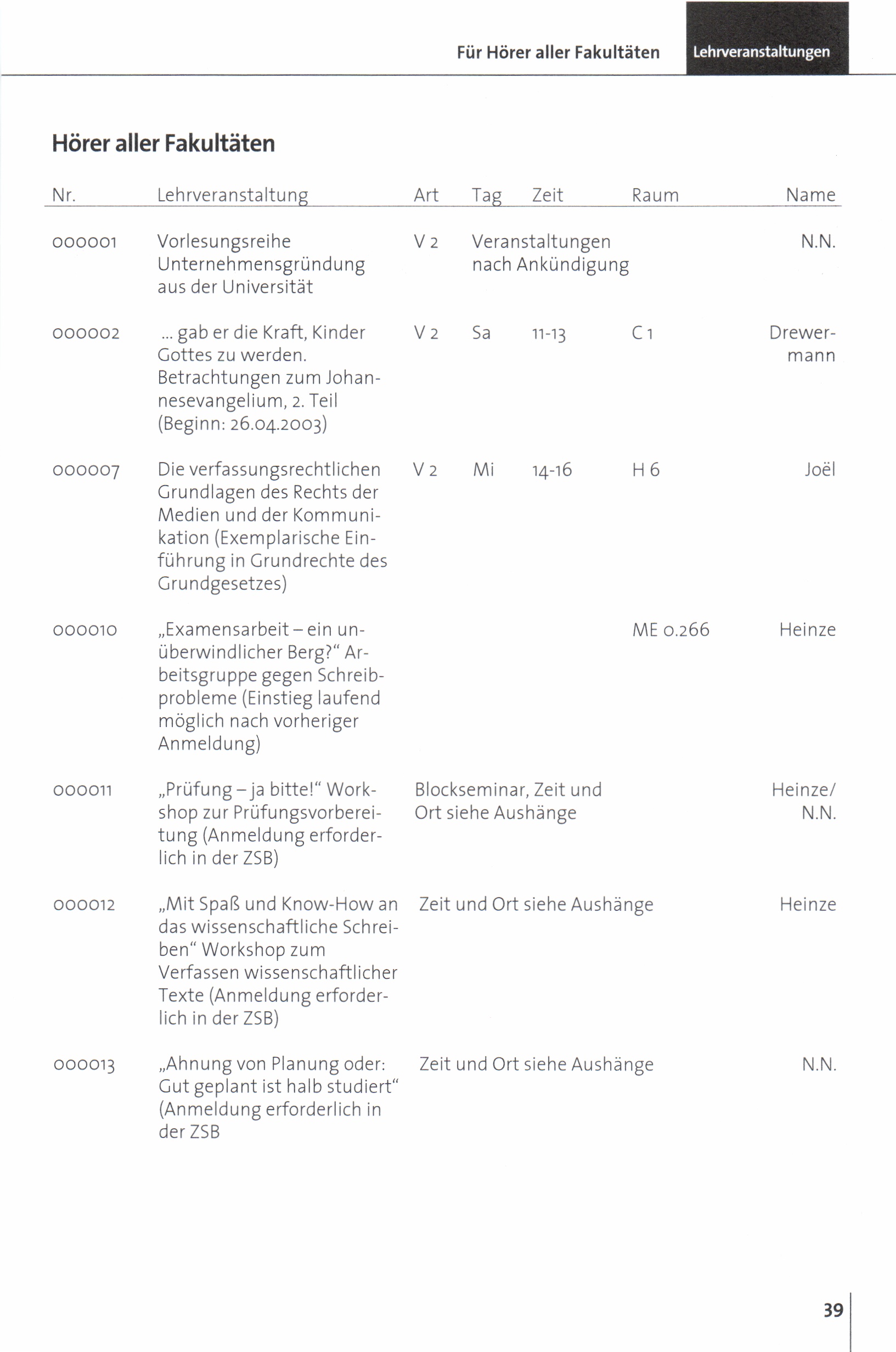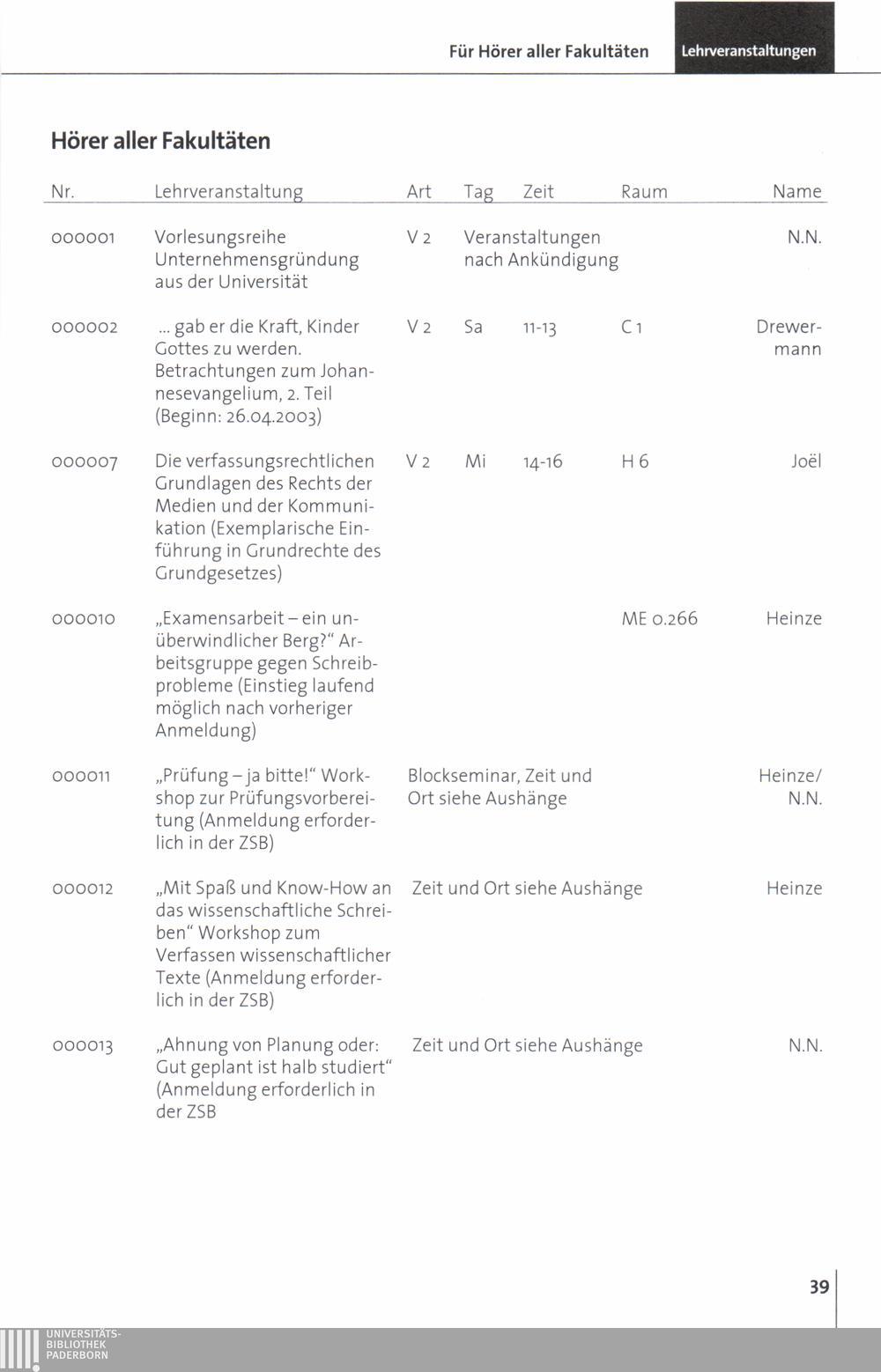 Personal- und Vorlesungsverzeichnis für die Universität Paderborn