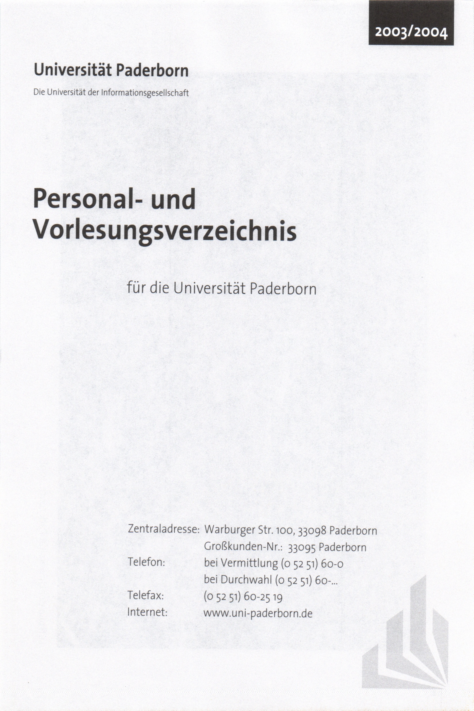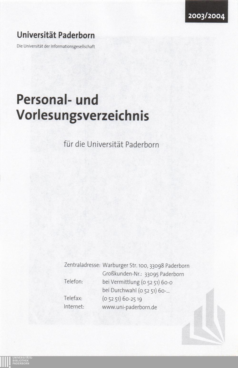 Personal- und Vorlesungsverzeichnis für die Universität Paderborn
