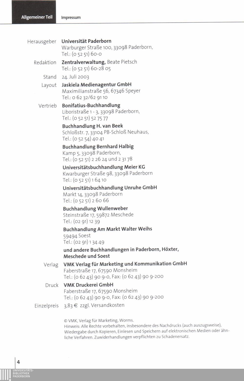 Personal- und Vorlesungsverzeichnis für die Universität Paderborn