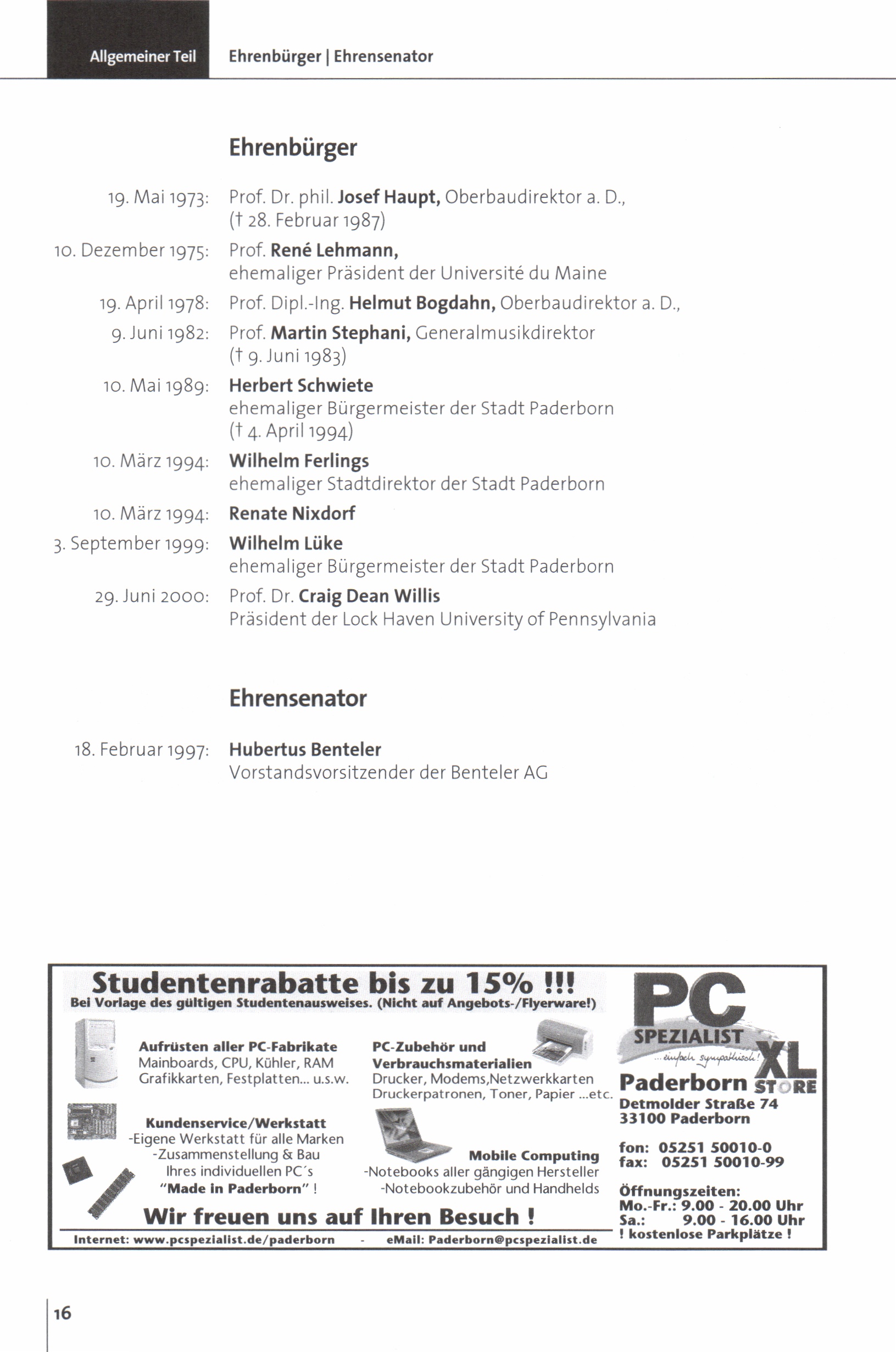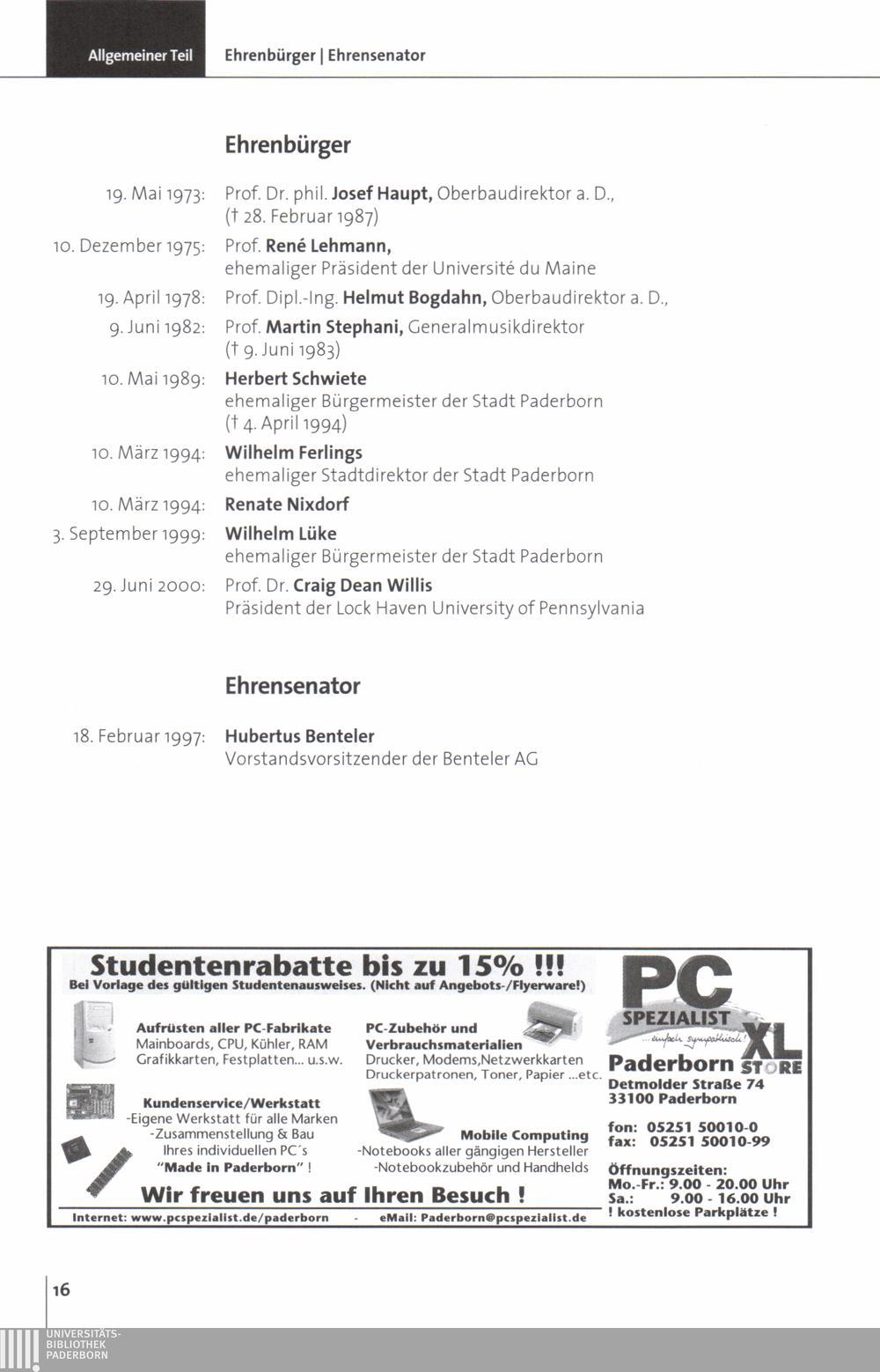 Personal- und Vorlesungsverzeichnis für die Universität Paderborn