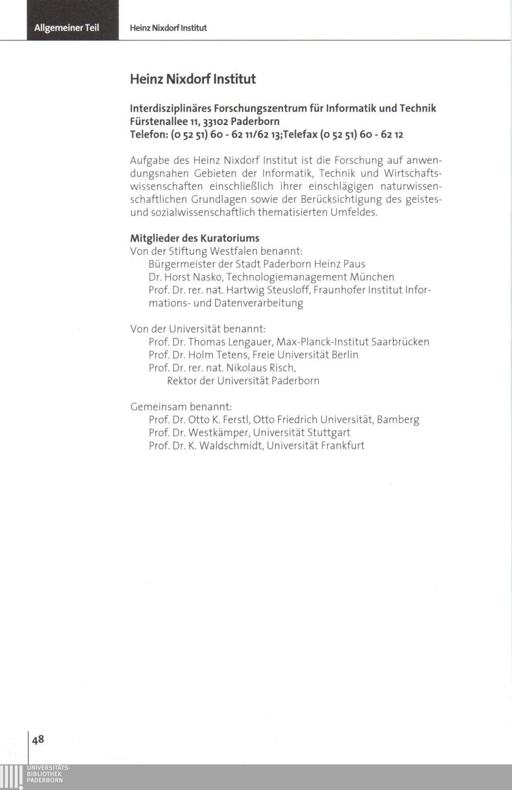 Personal- und Vorlesungsverzeichnis für die Universität Paderborn