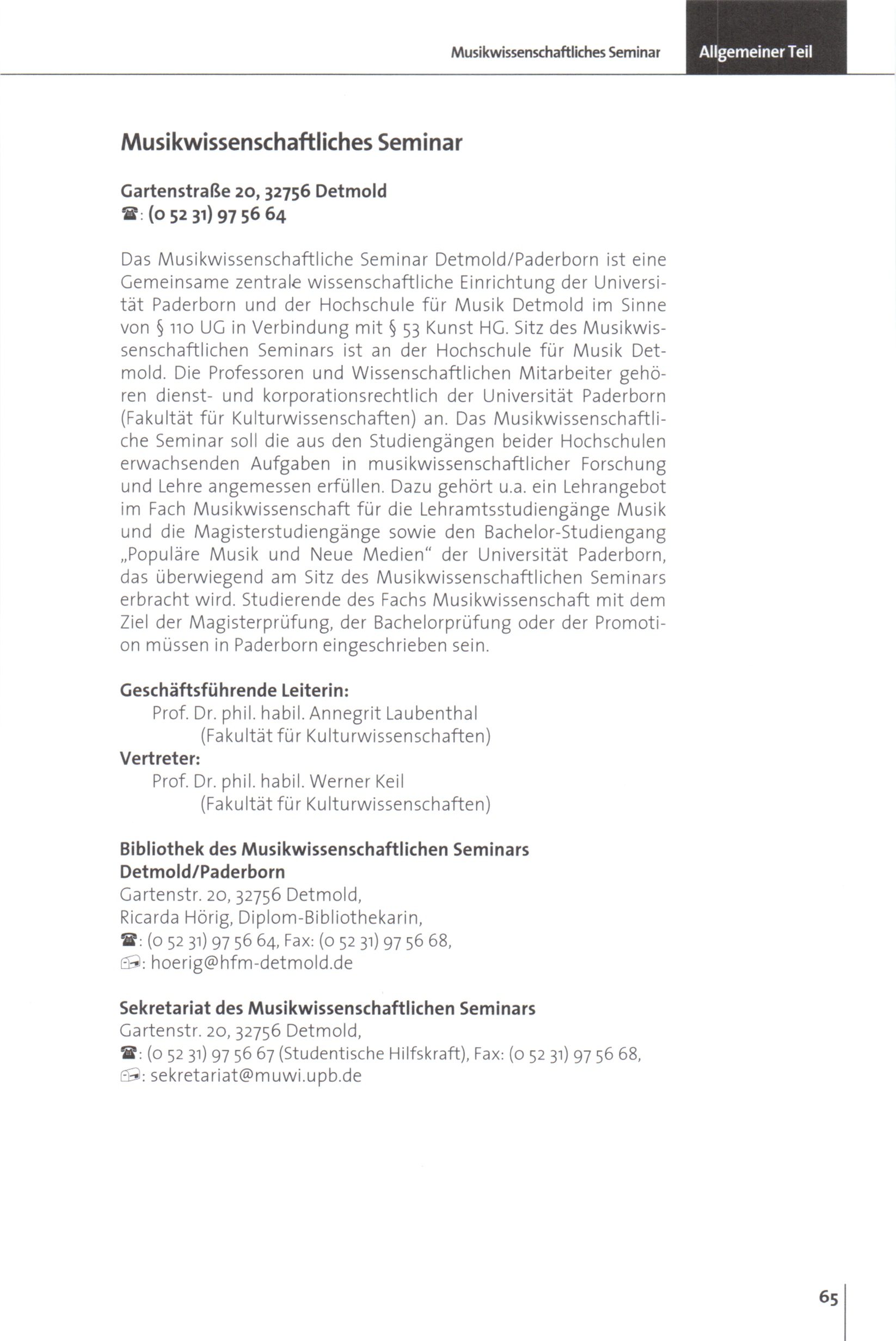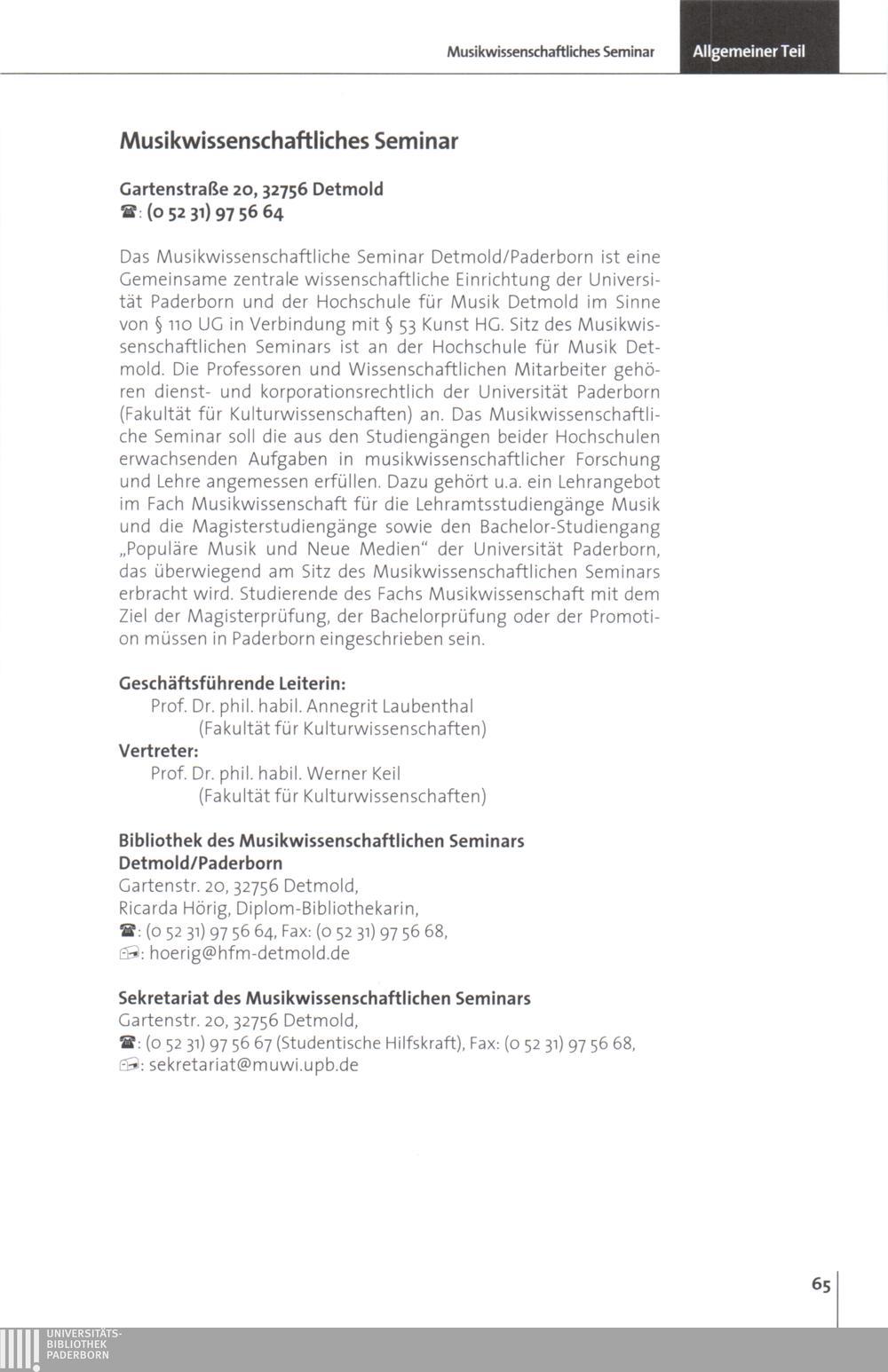 Personal- und Vorlesungsverzeichnis für die Universität Paderborn