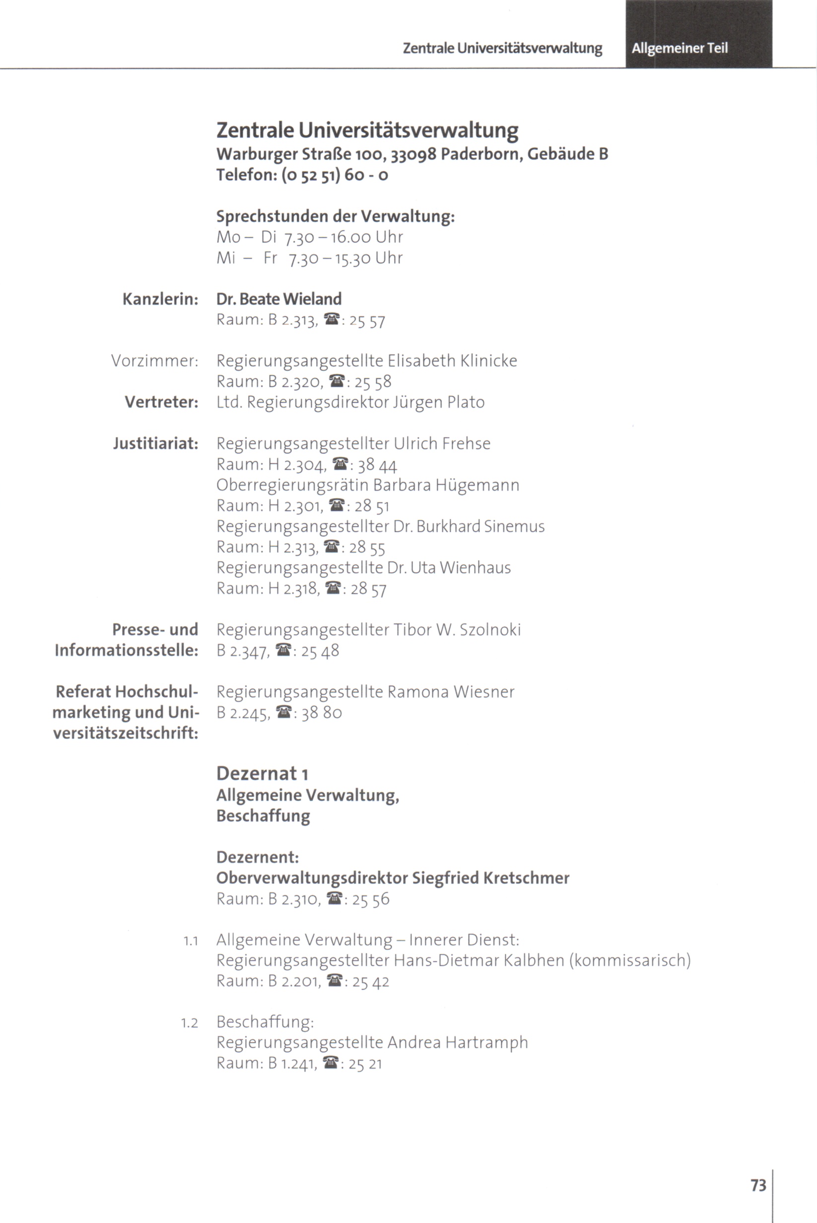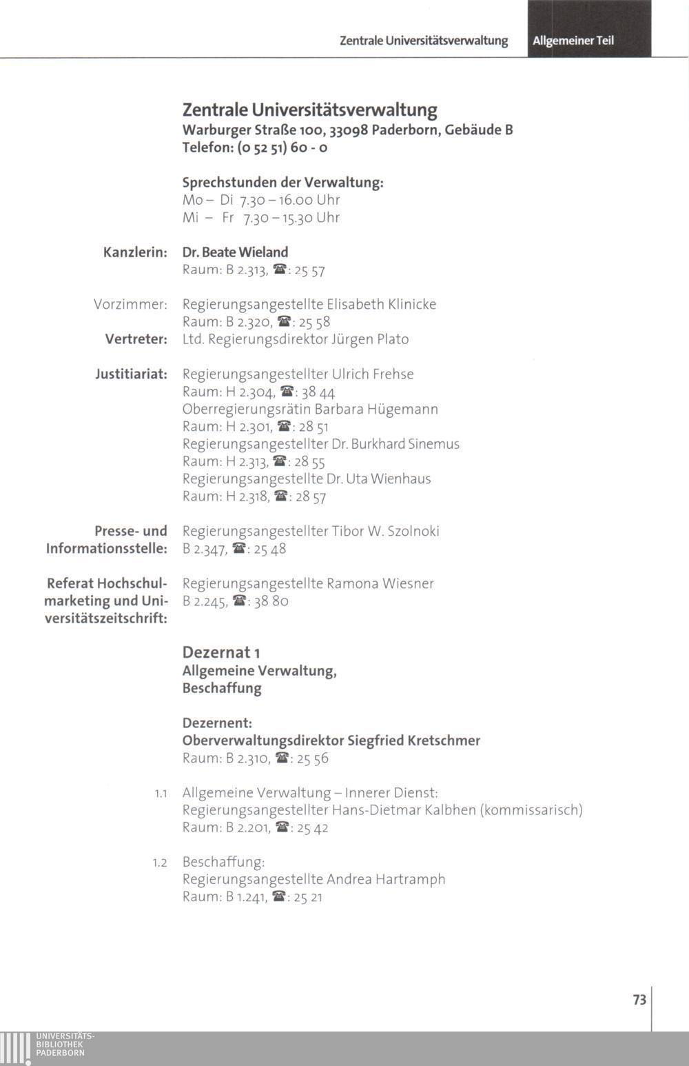 Personal- und Vorlesungsverzeichnis für die Universität Paderborn