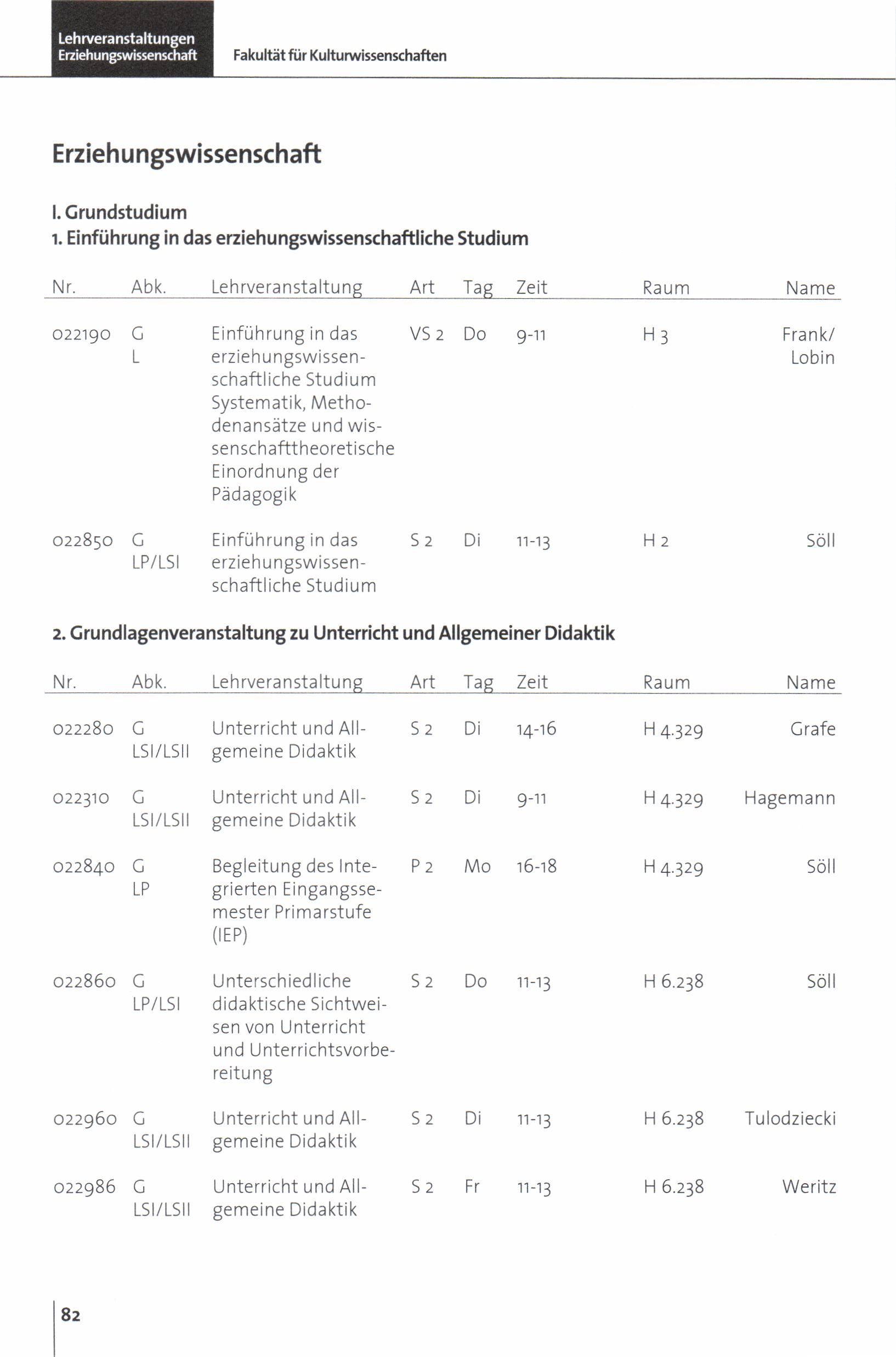 Lehrveranstaltungen