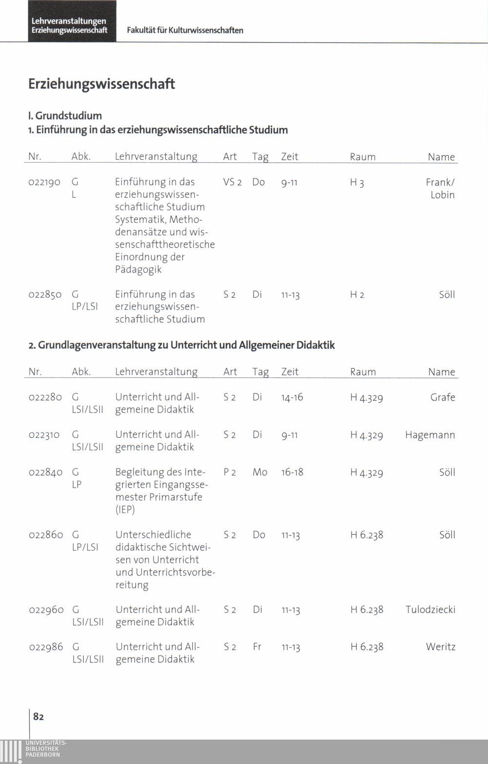 Personal- und Vorlesungsverzeichnis für die Universität Paderborn