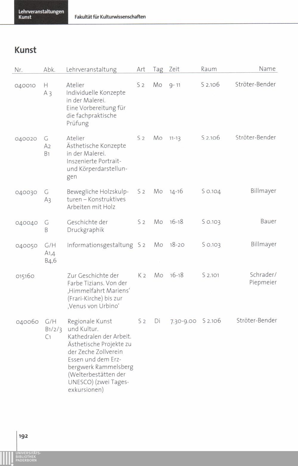 Personal- und Vorlesungsverzeichnis für die Universität Paderborn