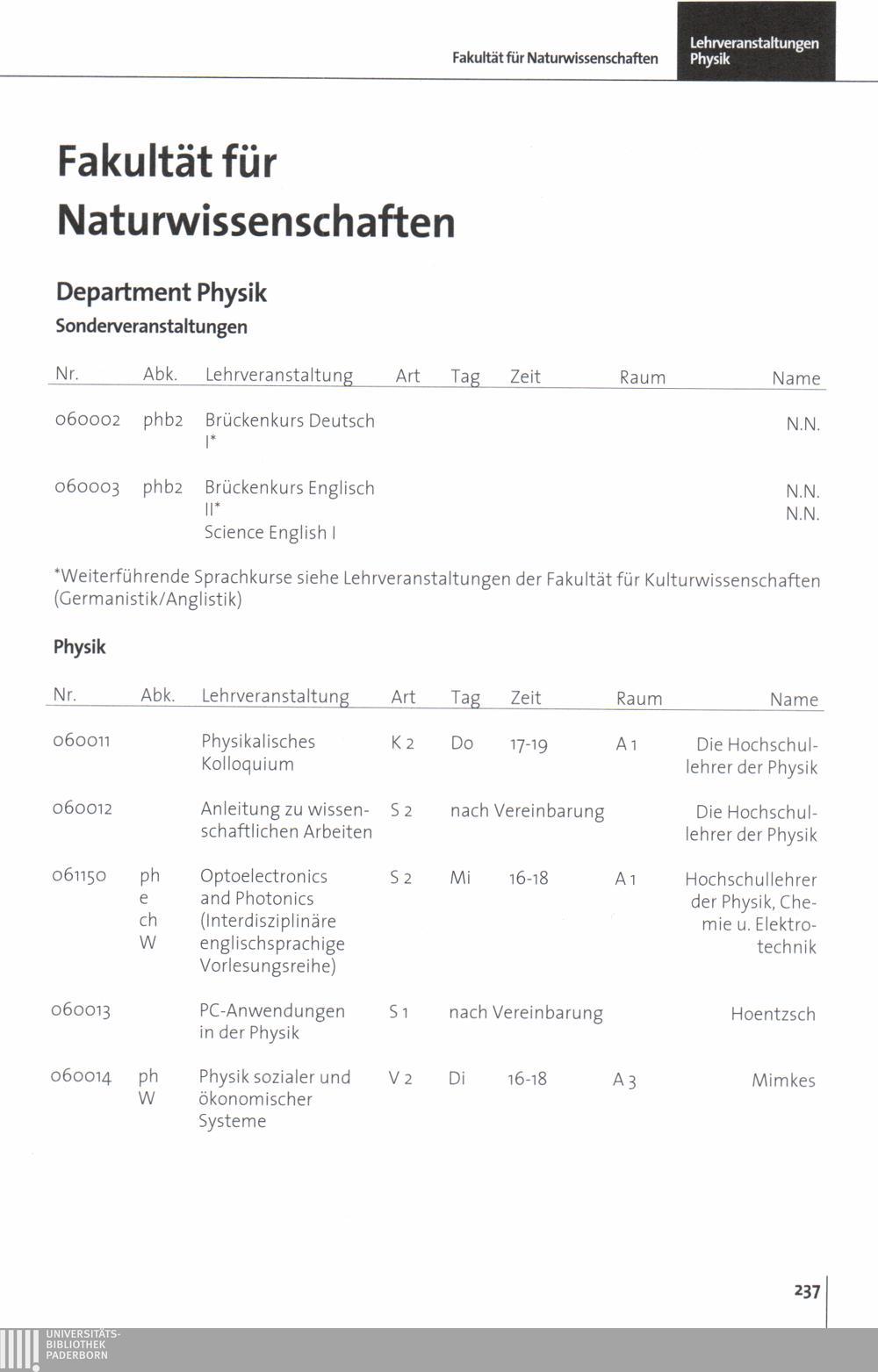 Personal- und Vorlesungsverzeichnis für die Universität Paderborn