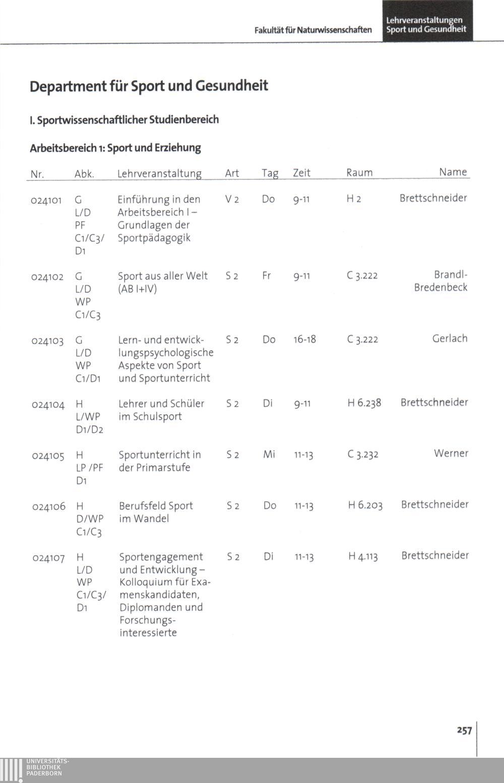 Personal- und Vorlesungsverzeichnis für die Universität Paderborn