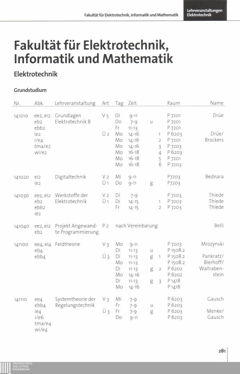 Fakultät für Elektrotechnik, Informatik und Mathematik