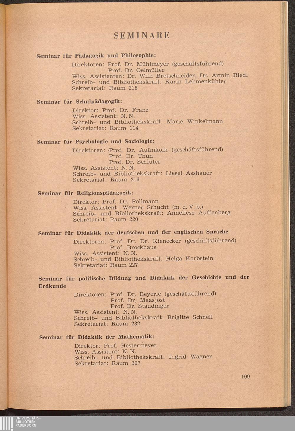 Personal- und Vorlesungsverzeichnis