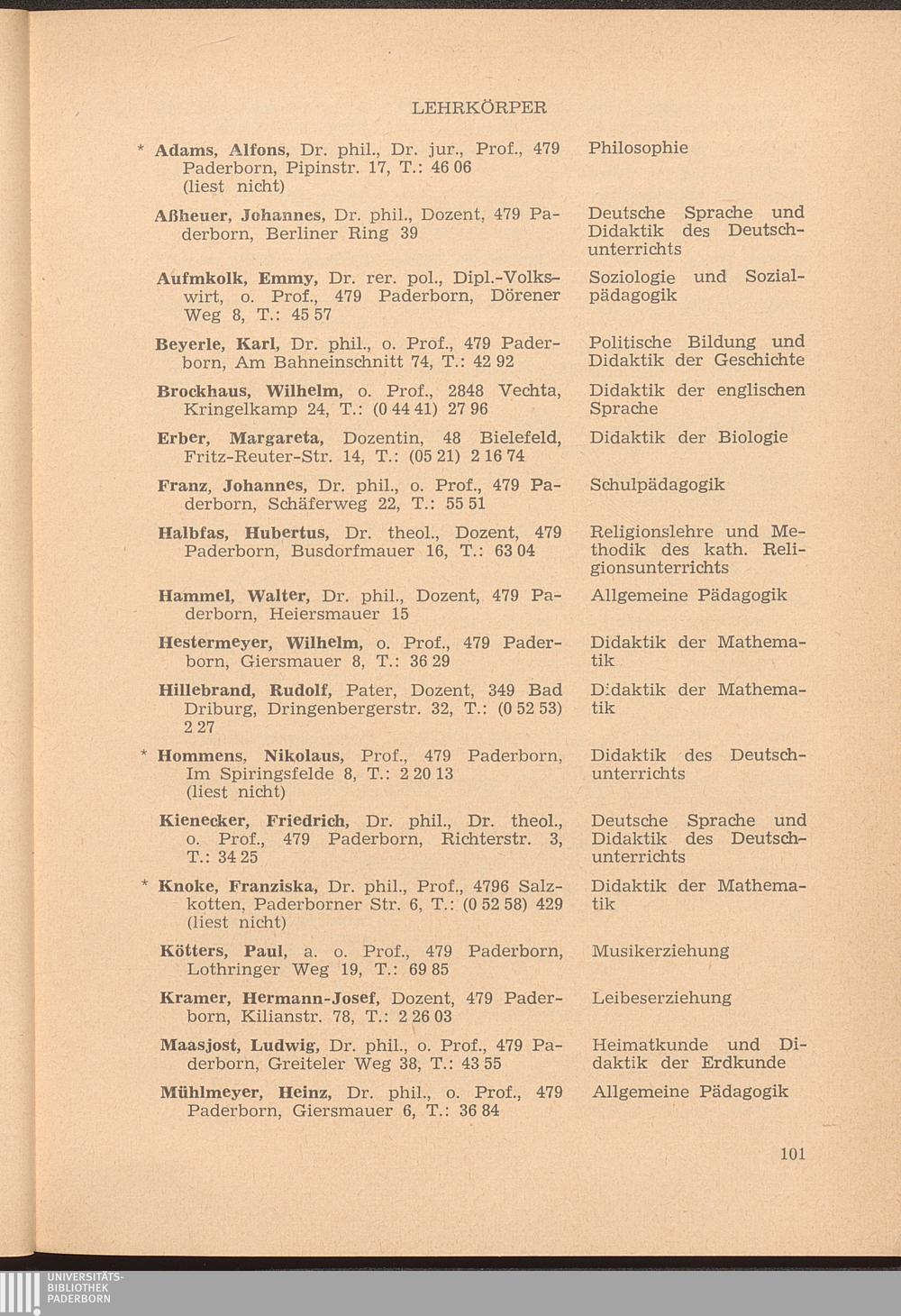 Personal- und Vorlesungsverzeichnis