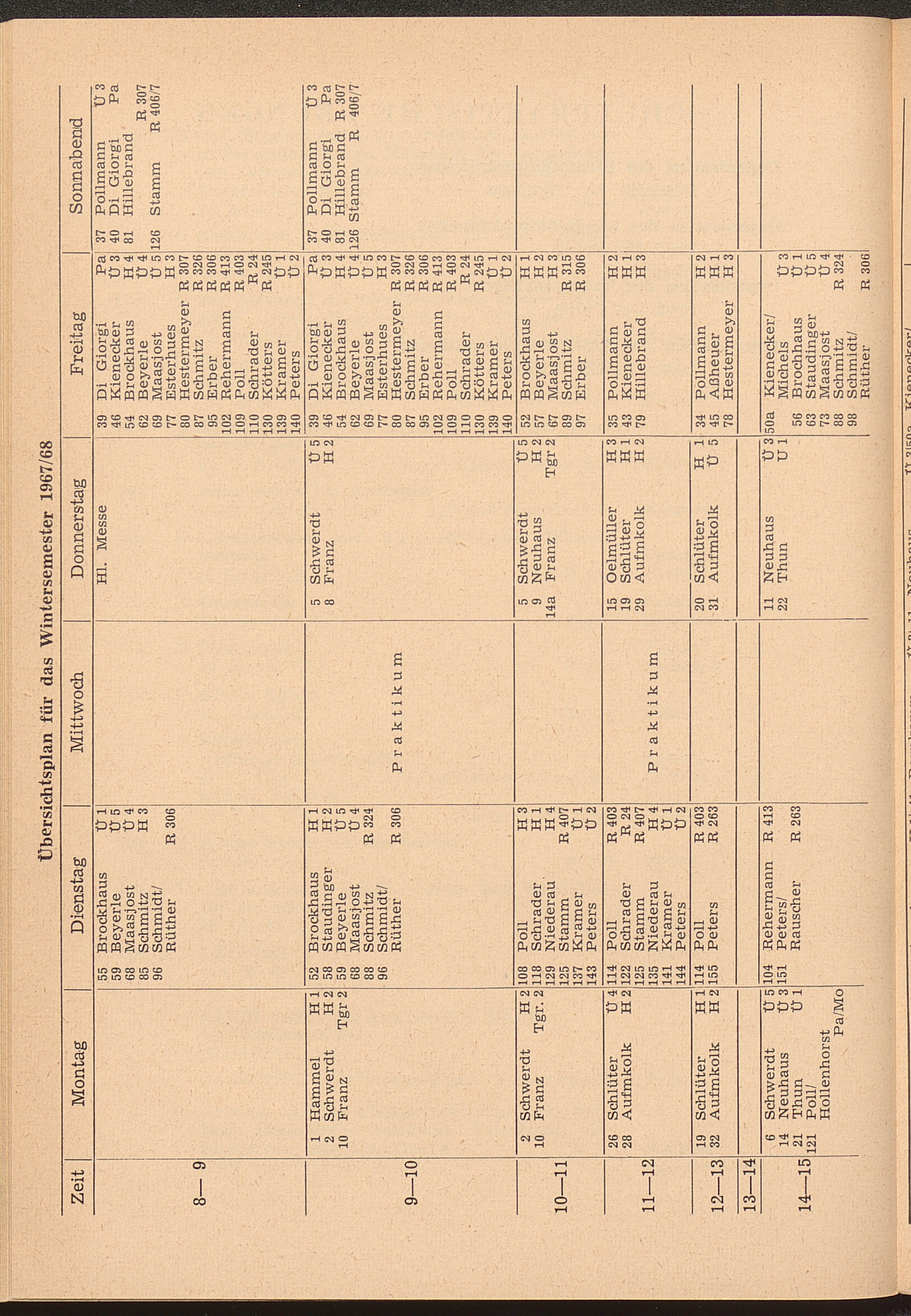 Übersichtsplan für das Wintersemester 1967/68