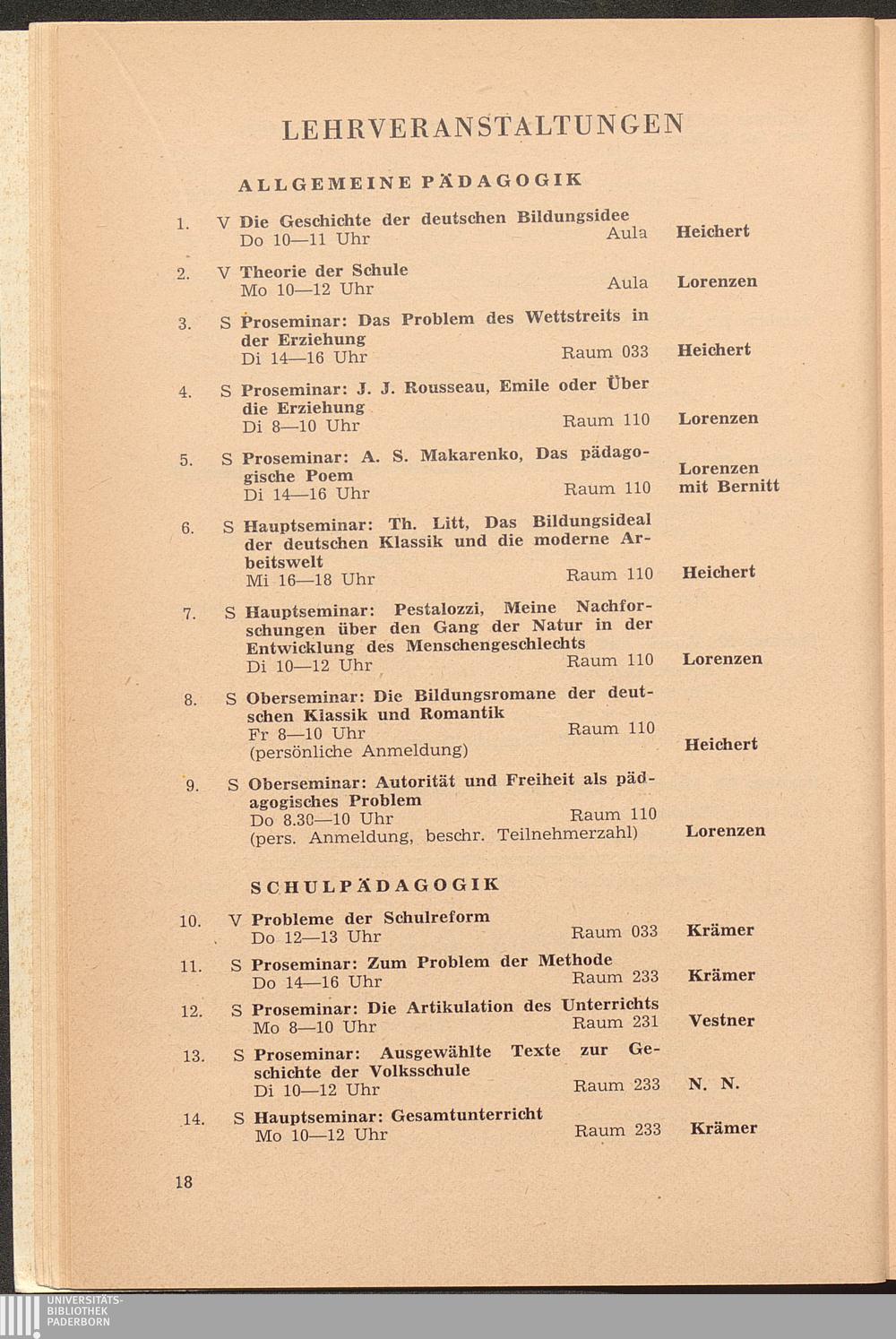 Personal- und Vorlesungsverzeichnis