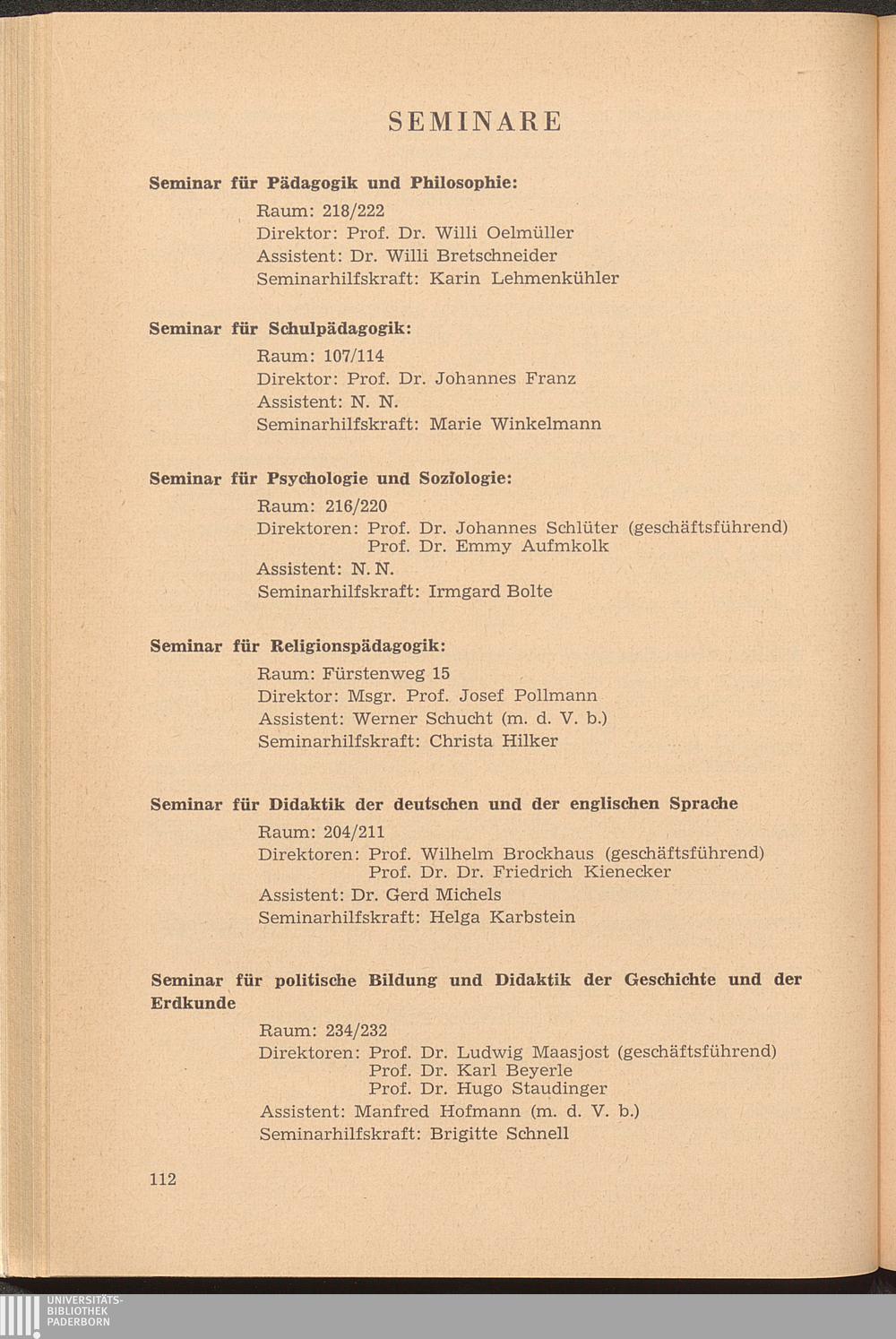 Personal- und Vorlesungsverzeichnis