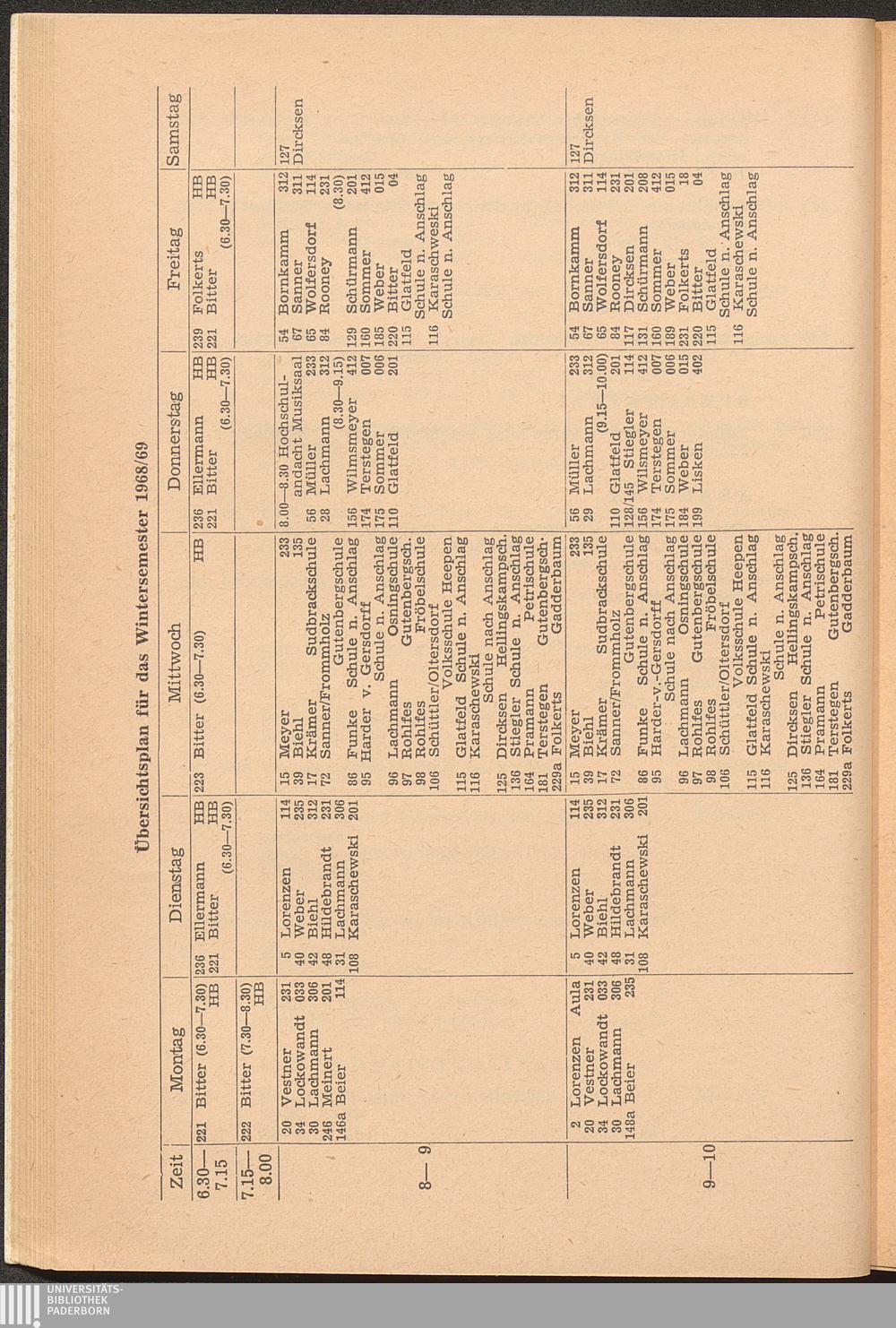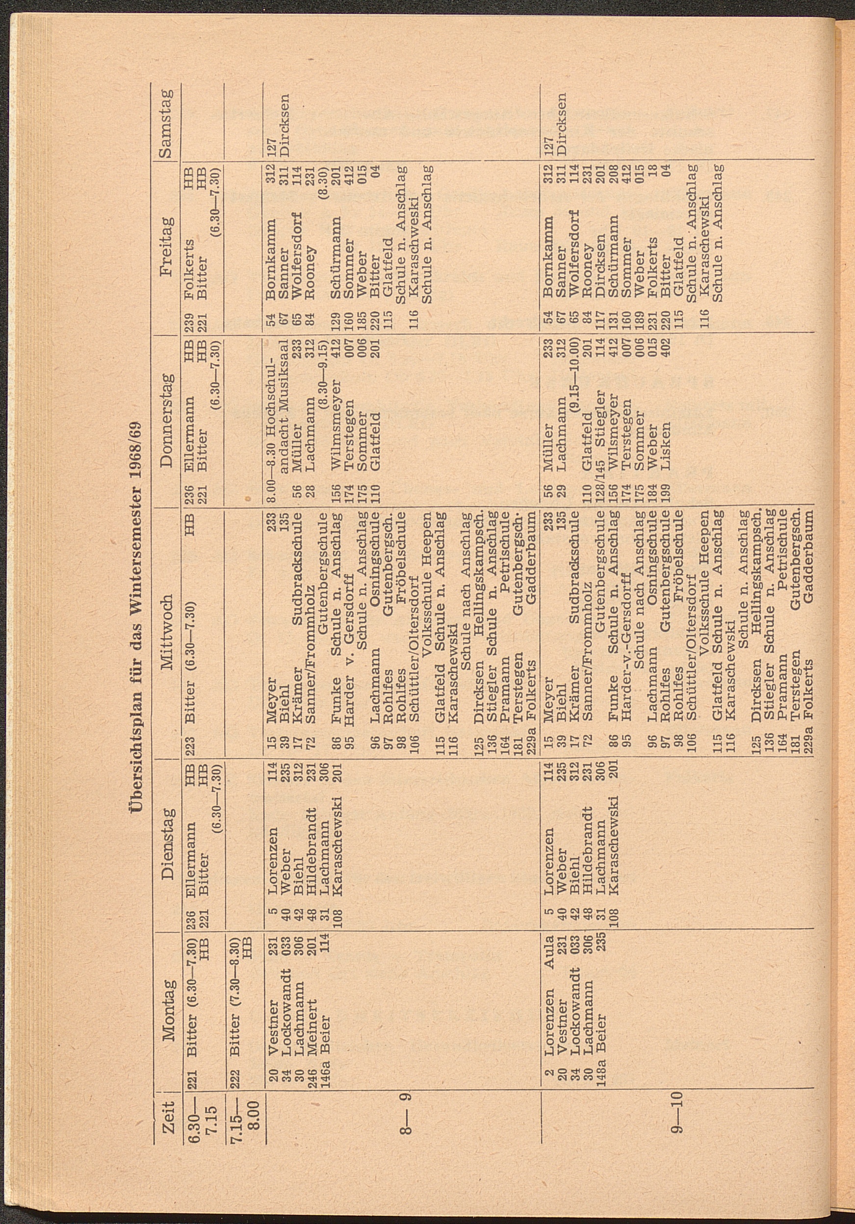 Übersichtsplan für das Wintersemester 1968/69