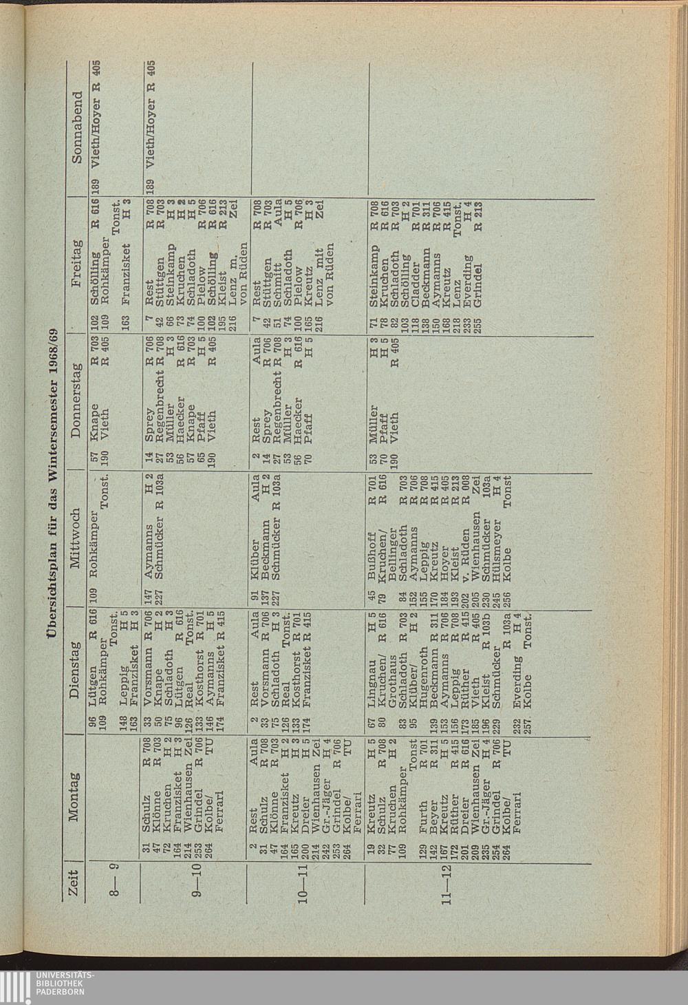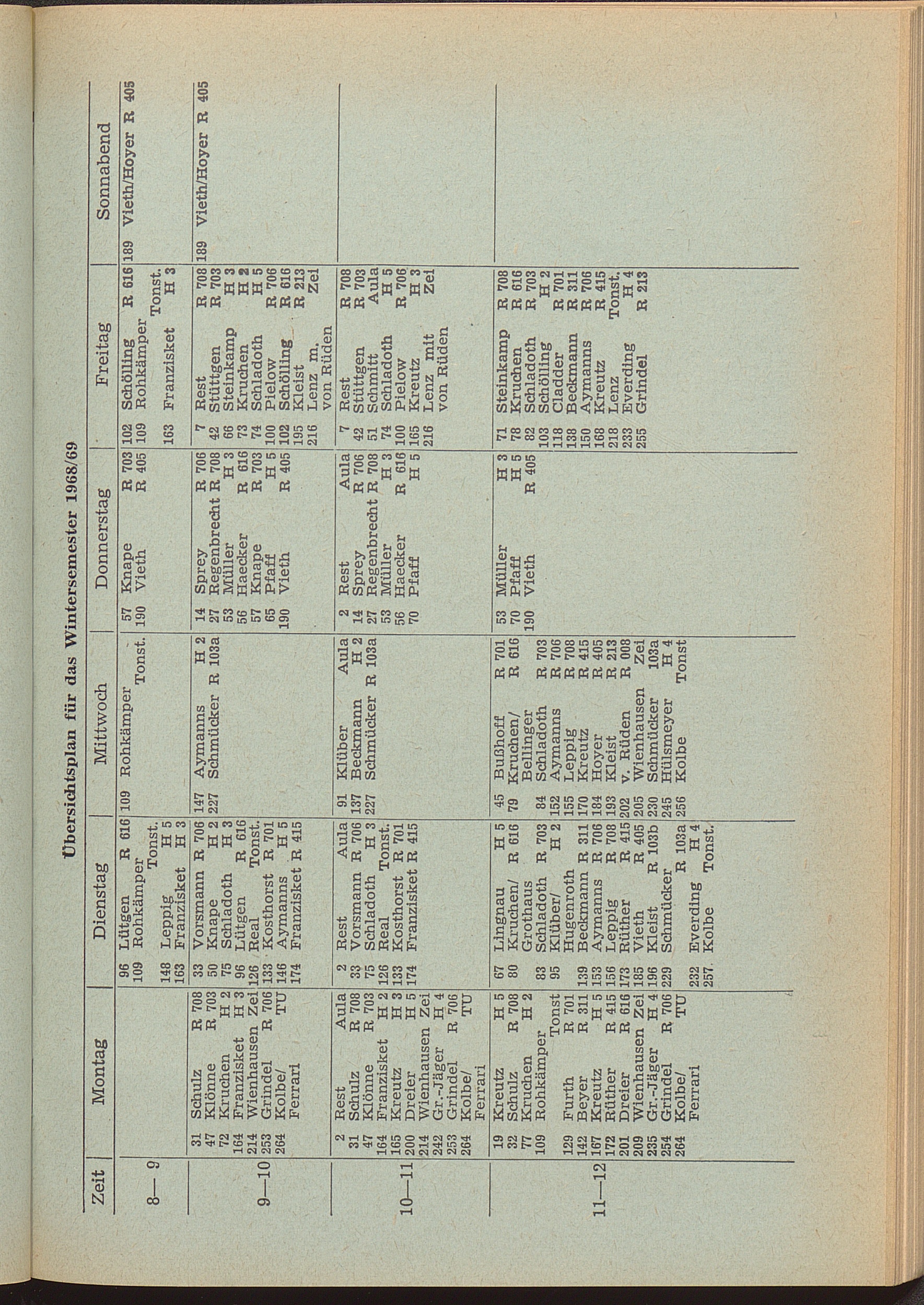 Übersichtsplan für das Wintersemester 1968/69