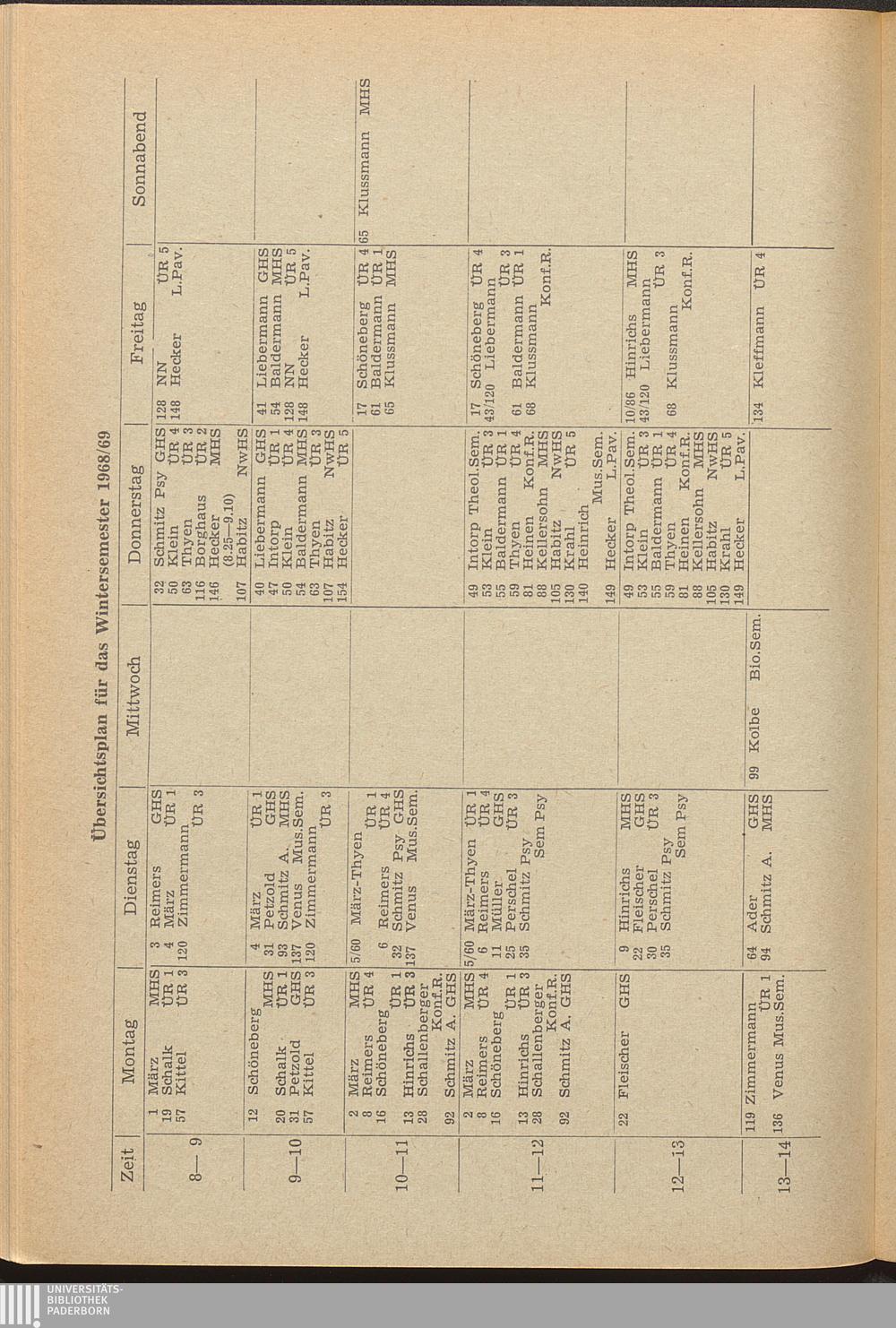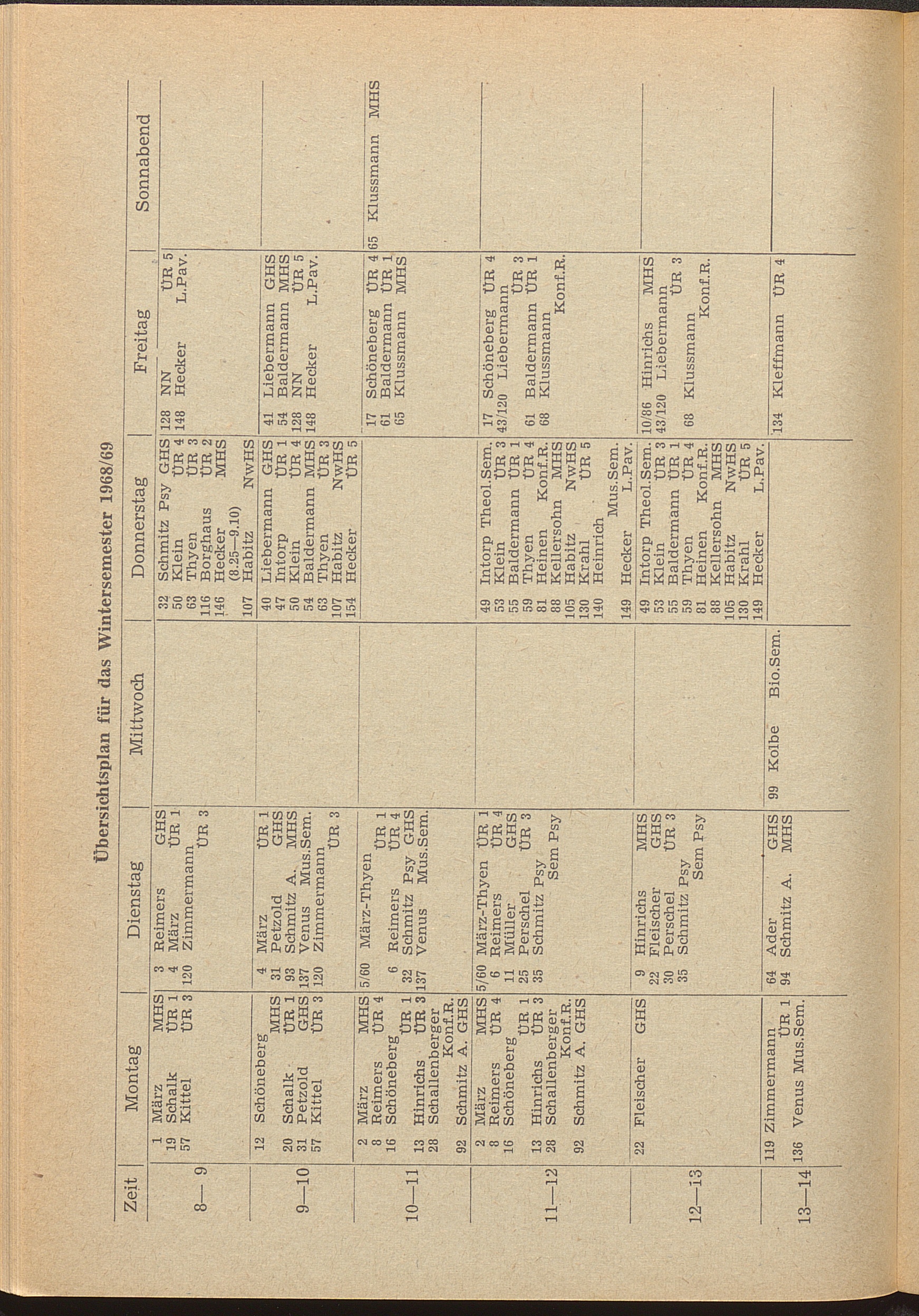 Übersichtsplan für das Wintersemester 1968/69
