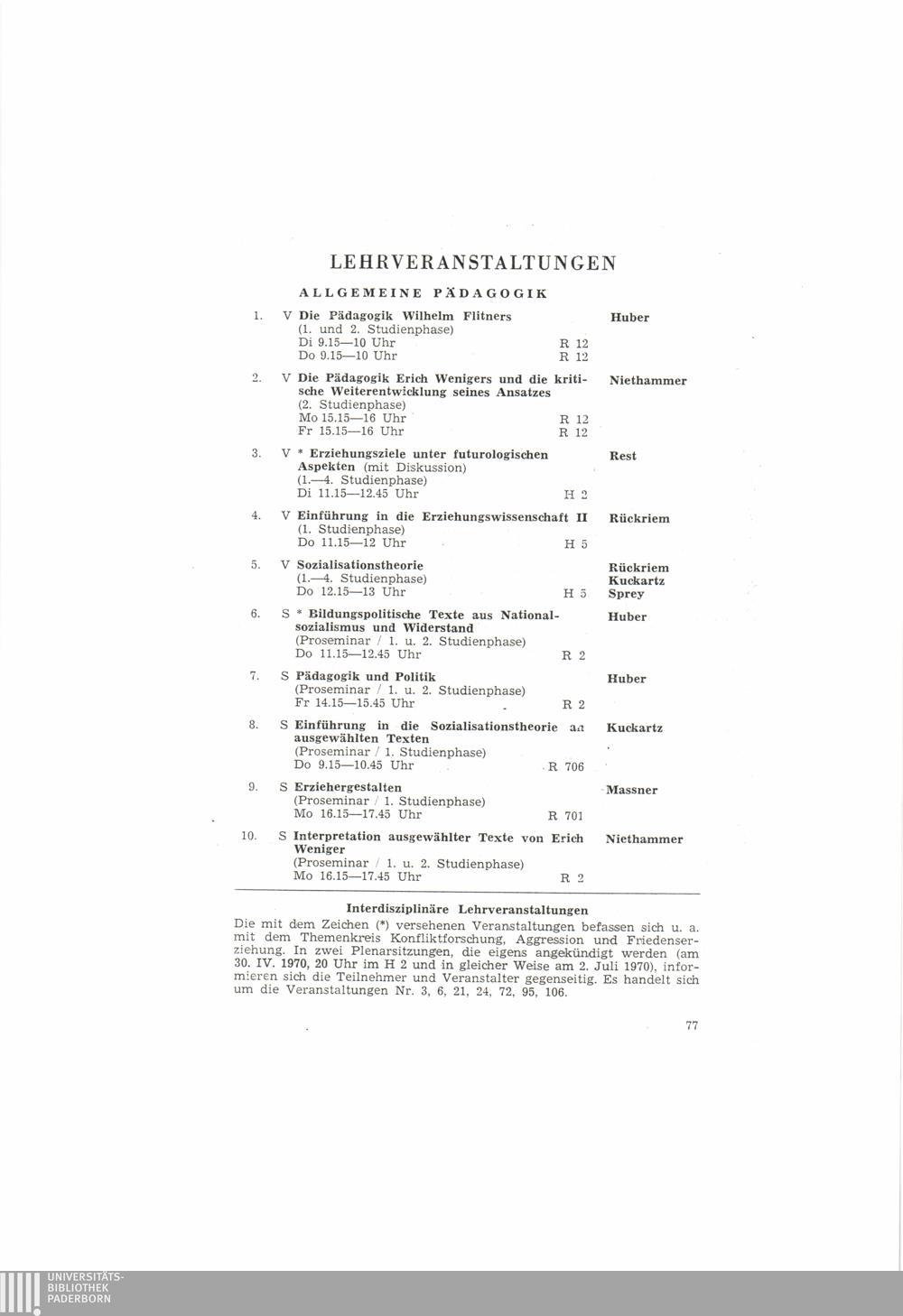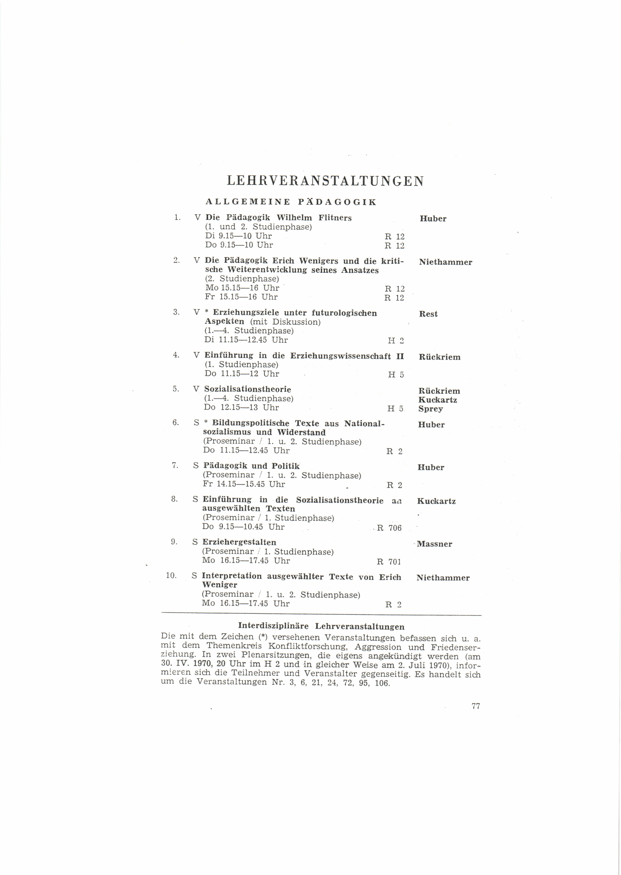 (1970) Sommersemester 1970