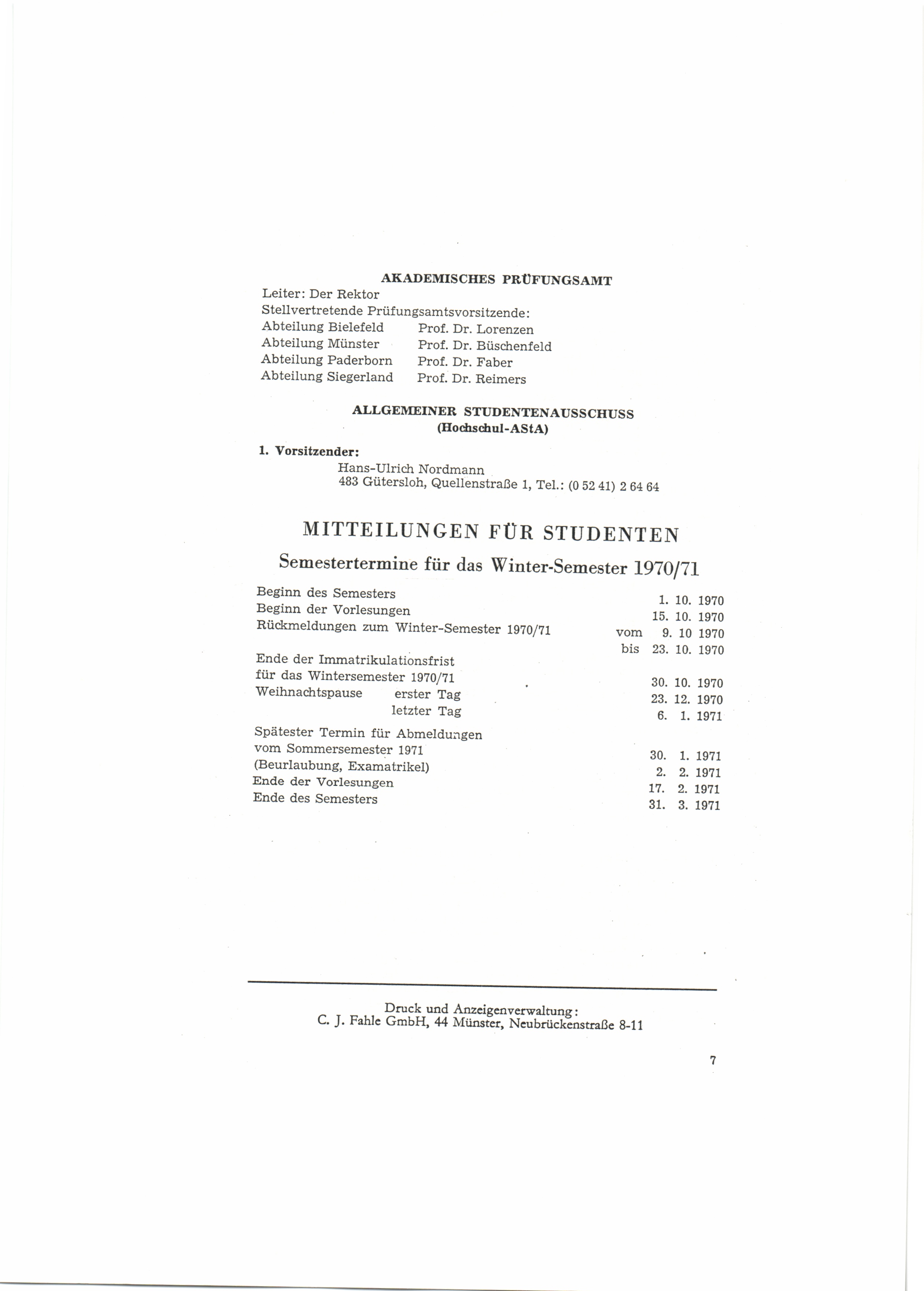 1970 - 1971 Wintersemester 1970/71