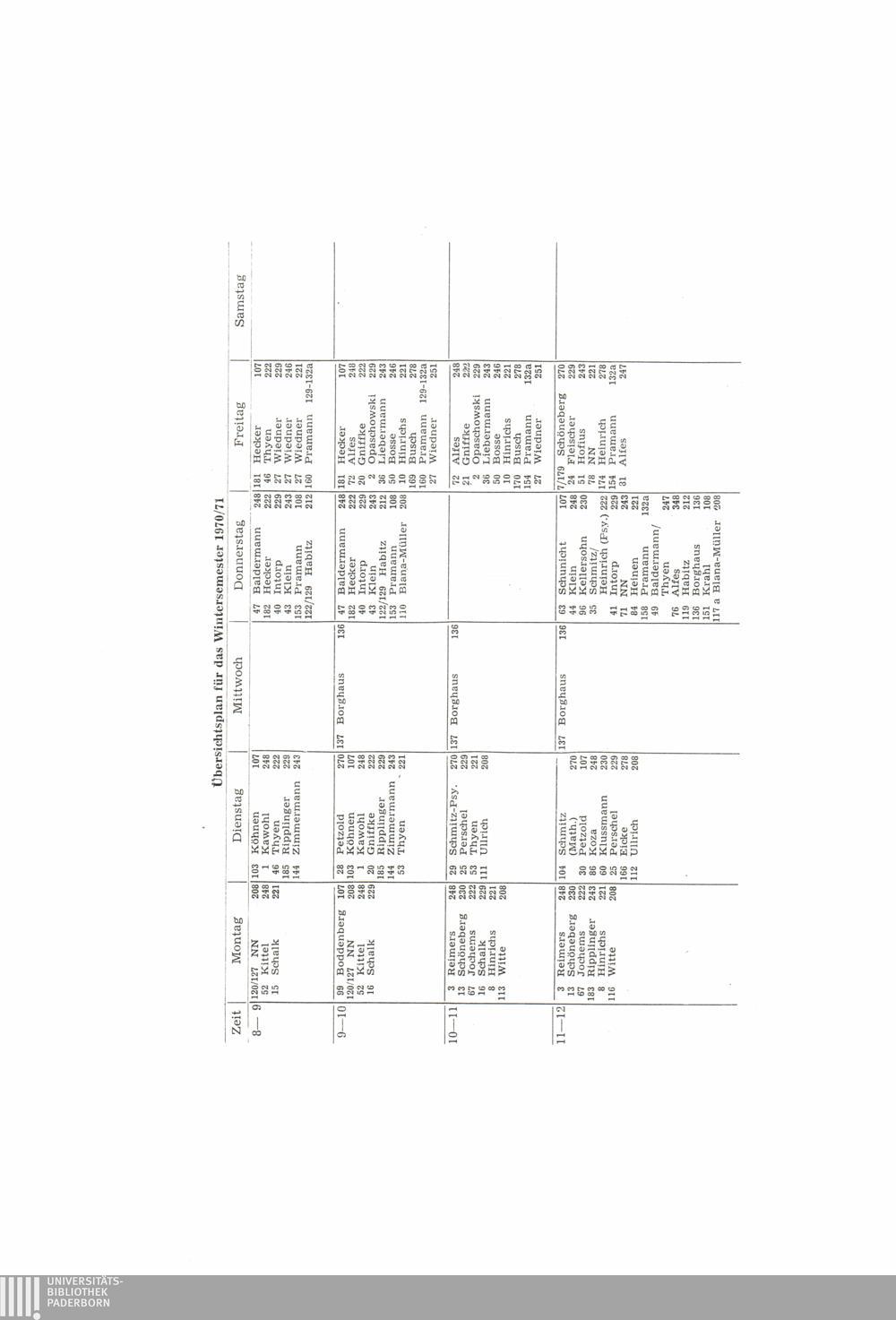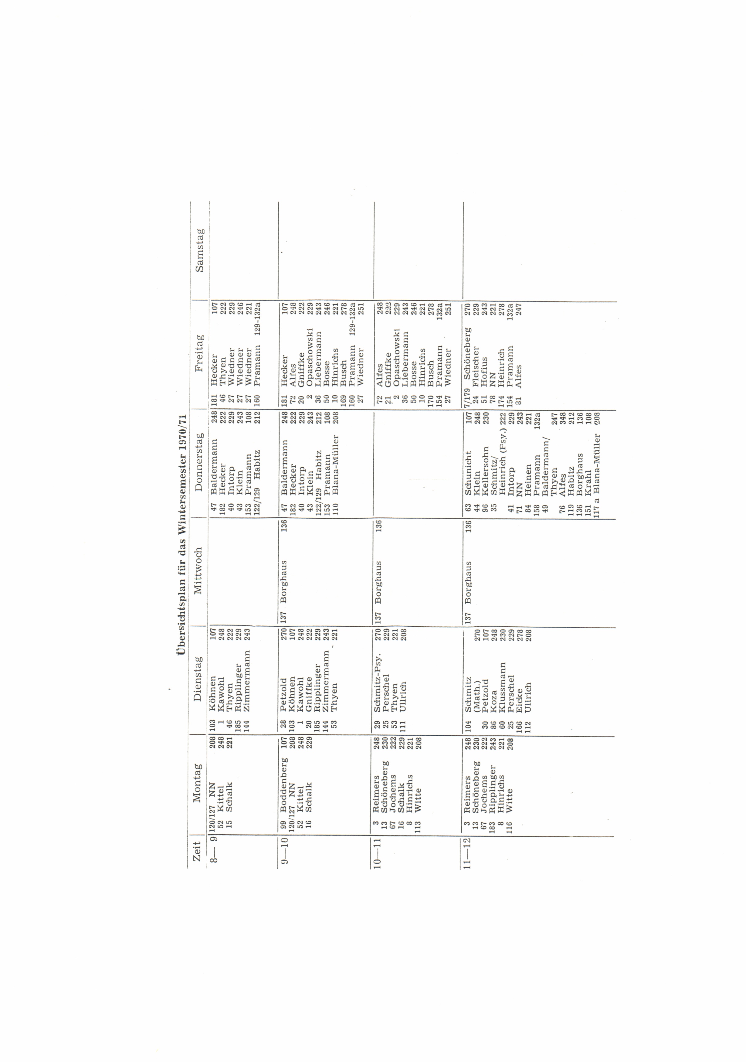 Übersichtsplan für das Wintersemester 1970/71