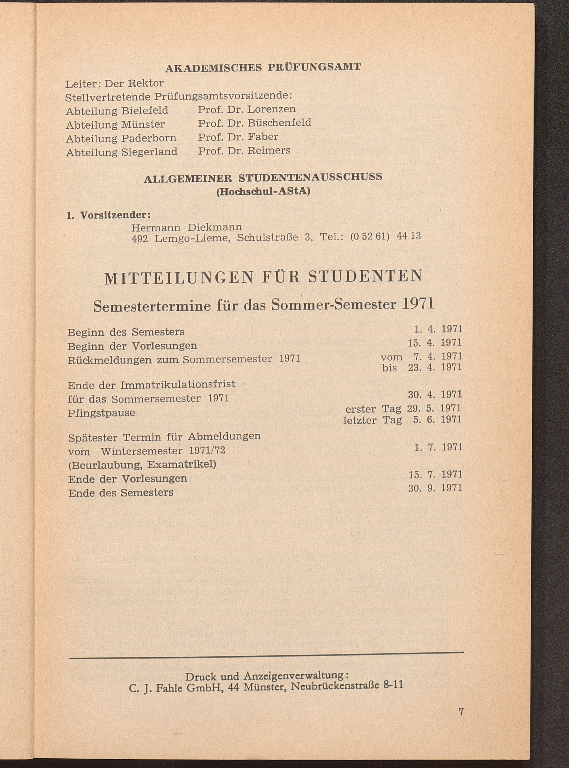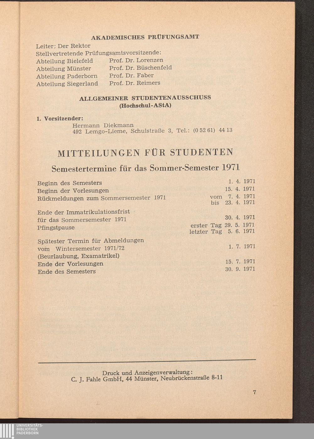 (1971) Sommersemester 1971