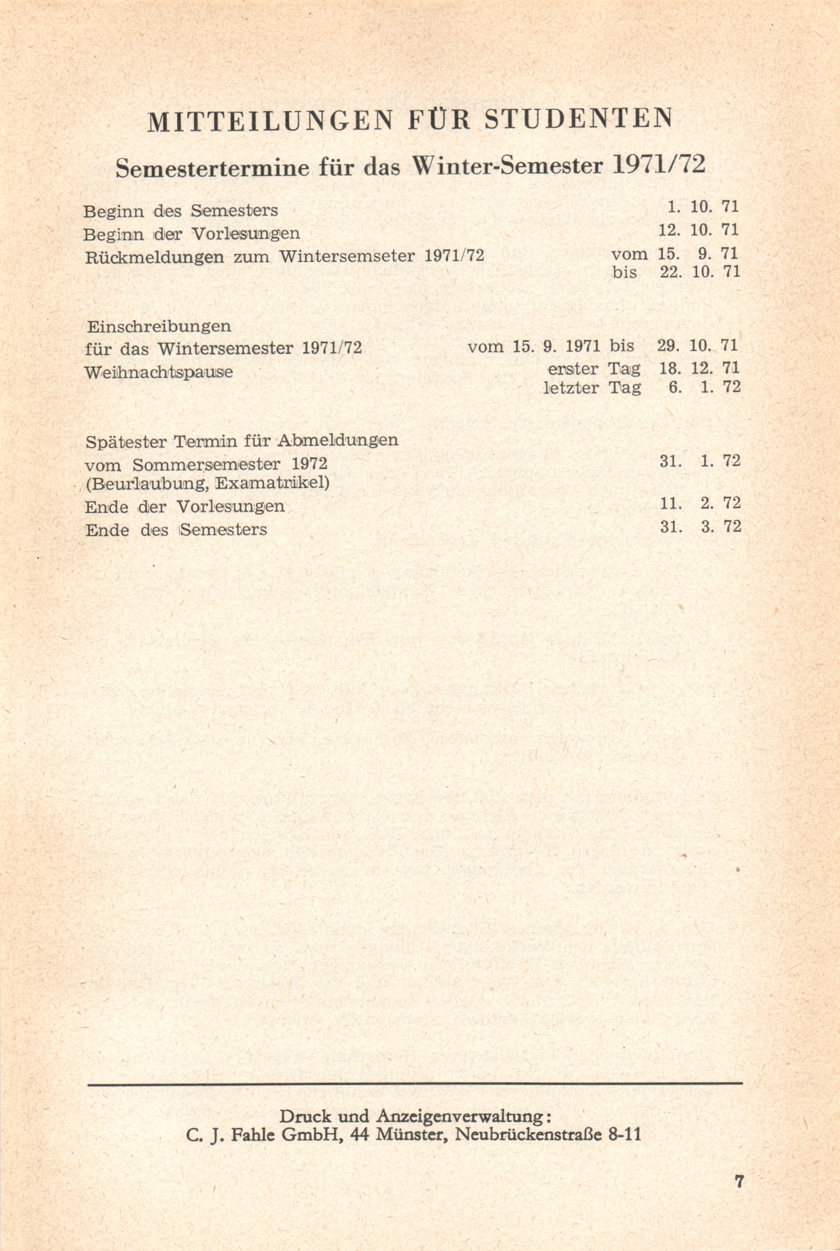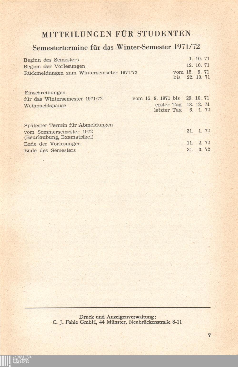 (1971-1972) Wintersemester 1971/72
