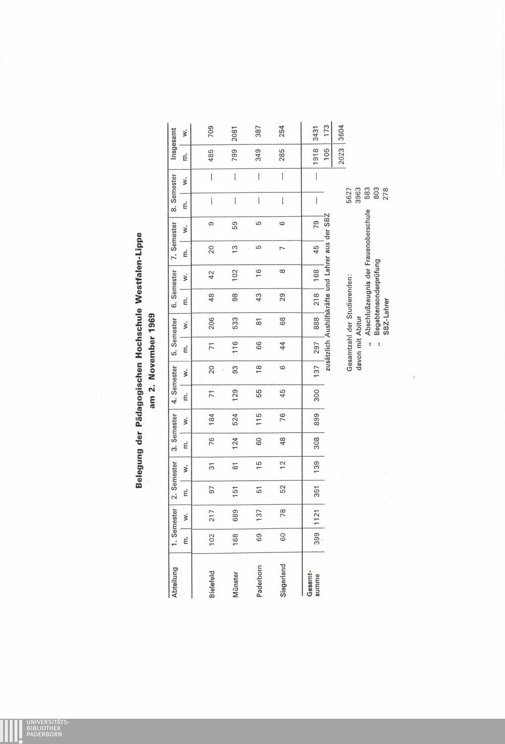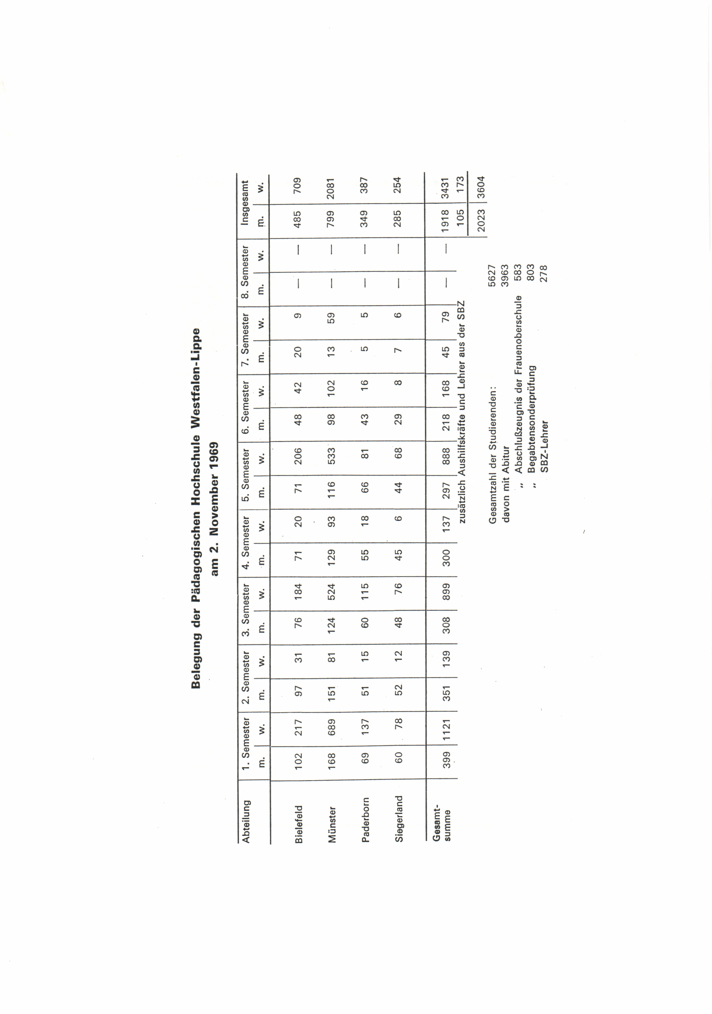 Belegung der Pädagogischen Hochschule Westfalen-Lippe am 2. November 1969