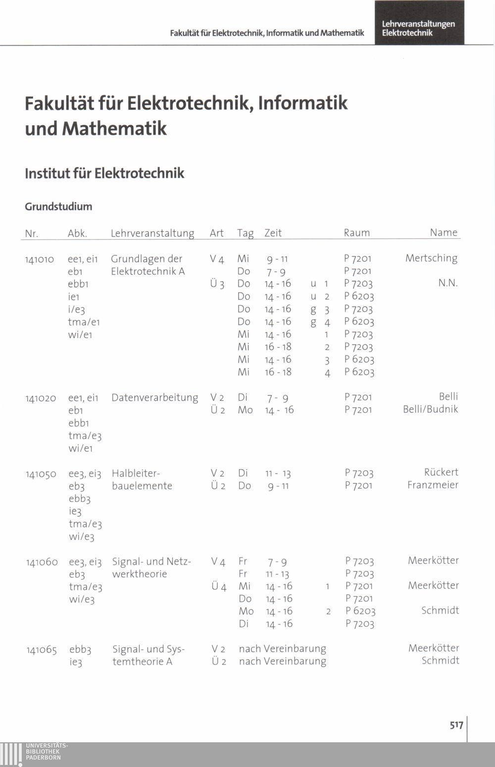 Personal- und Vorlesungsverzeichnis für die Universität Paderborn