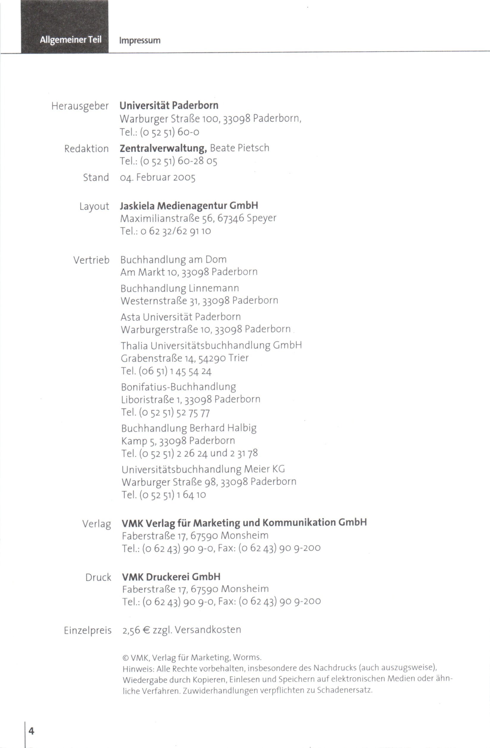 Personal- und Vorlesungsverzeichnis für die Universität Paderborn