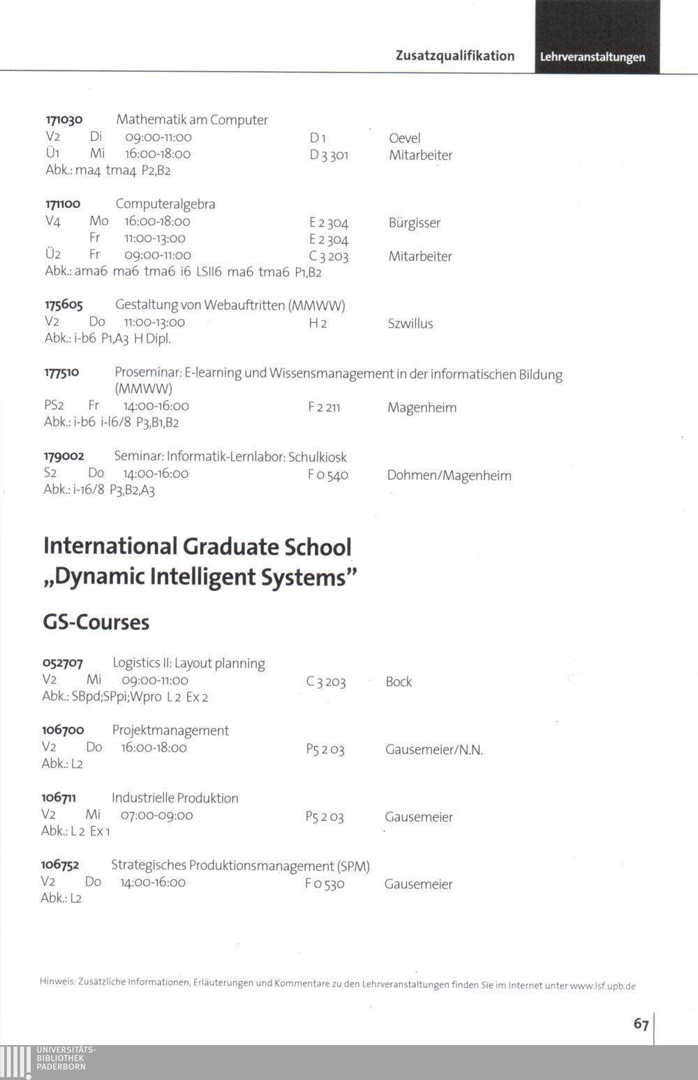 Personal- und Vorlesungsverzeichnis für die Universität Paderborn