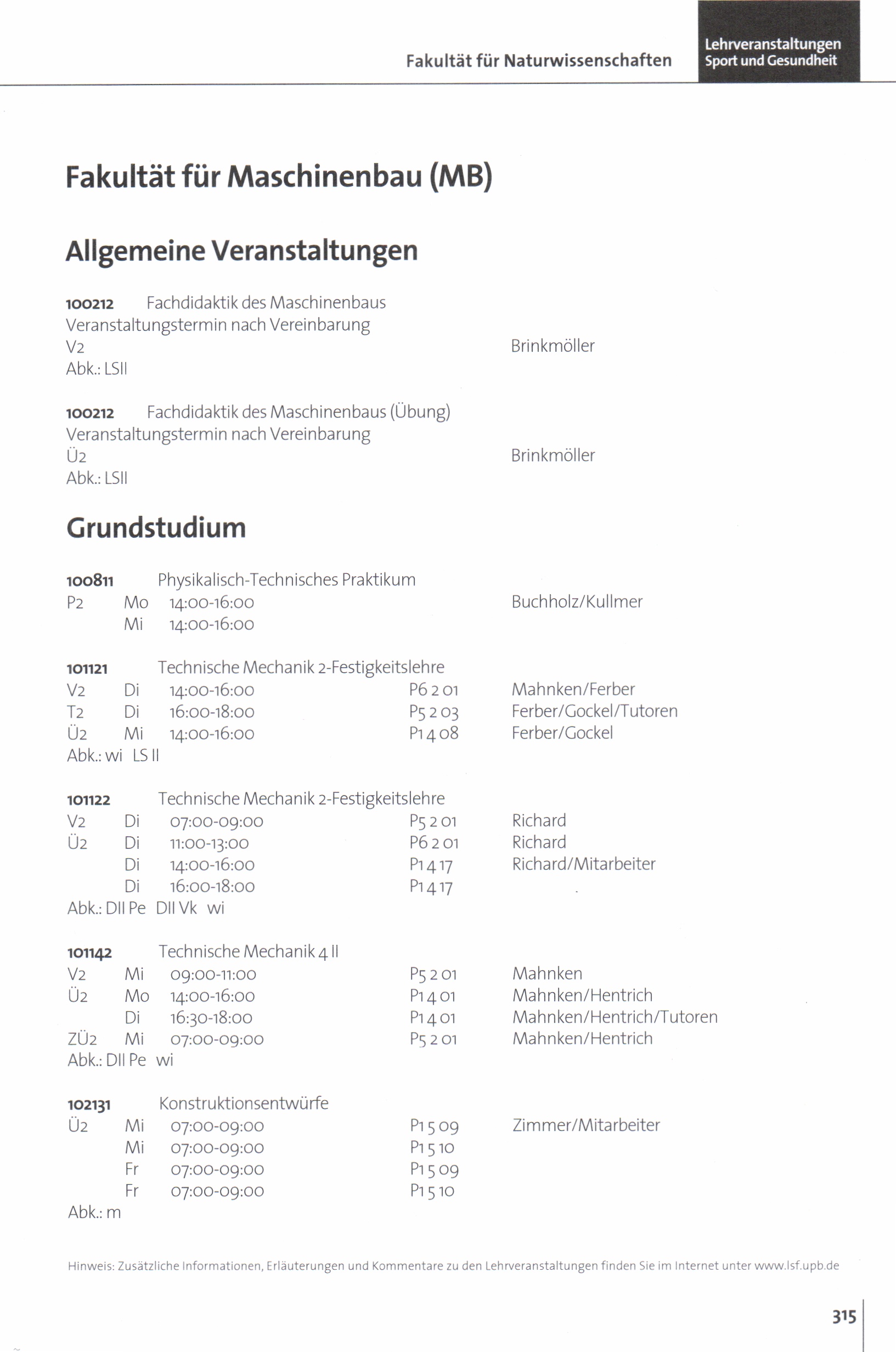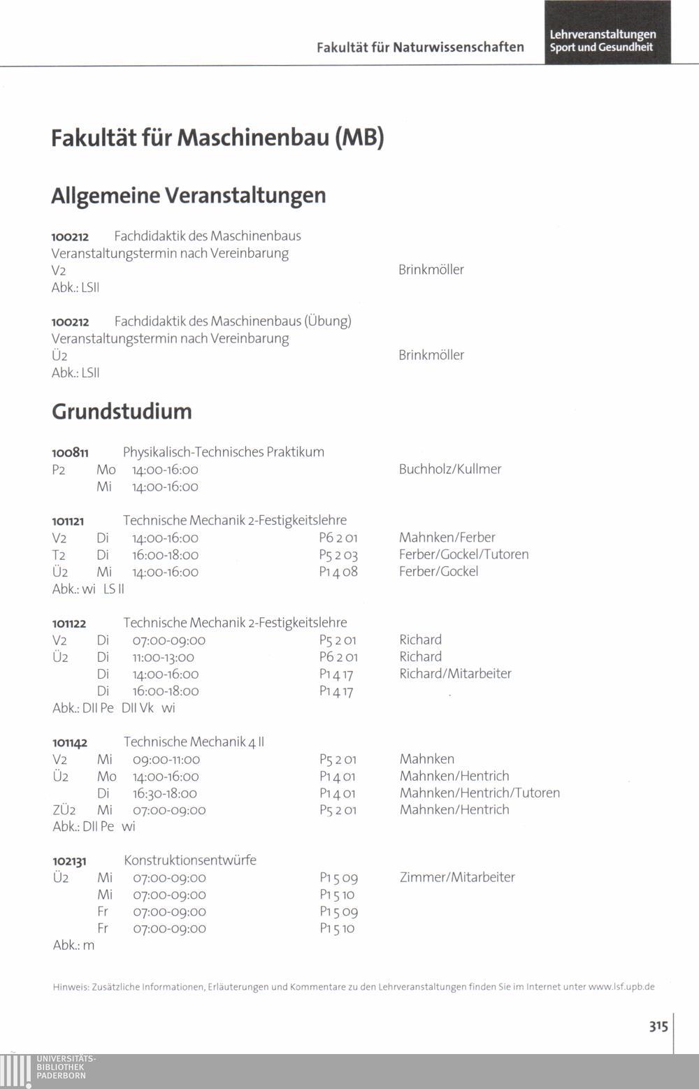 Personal- und Vorlesungsverzeichnis für die Universität Paderborn