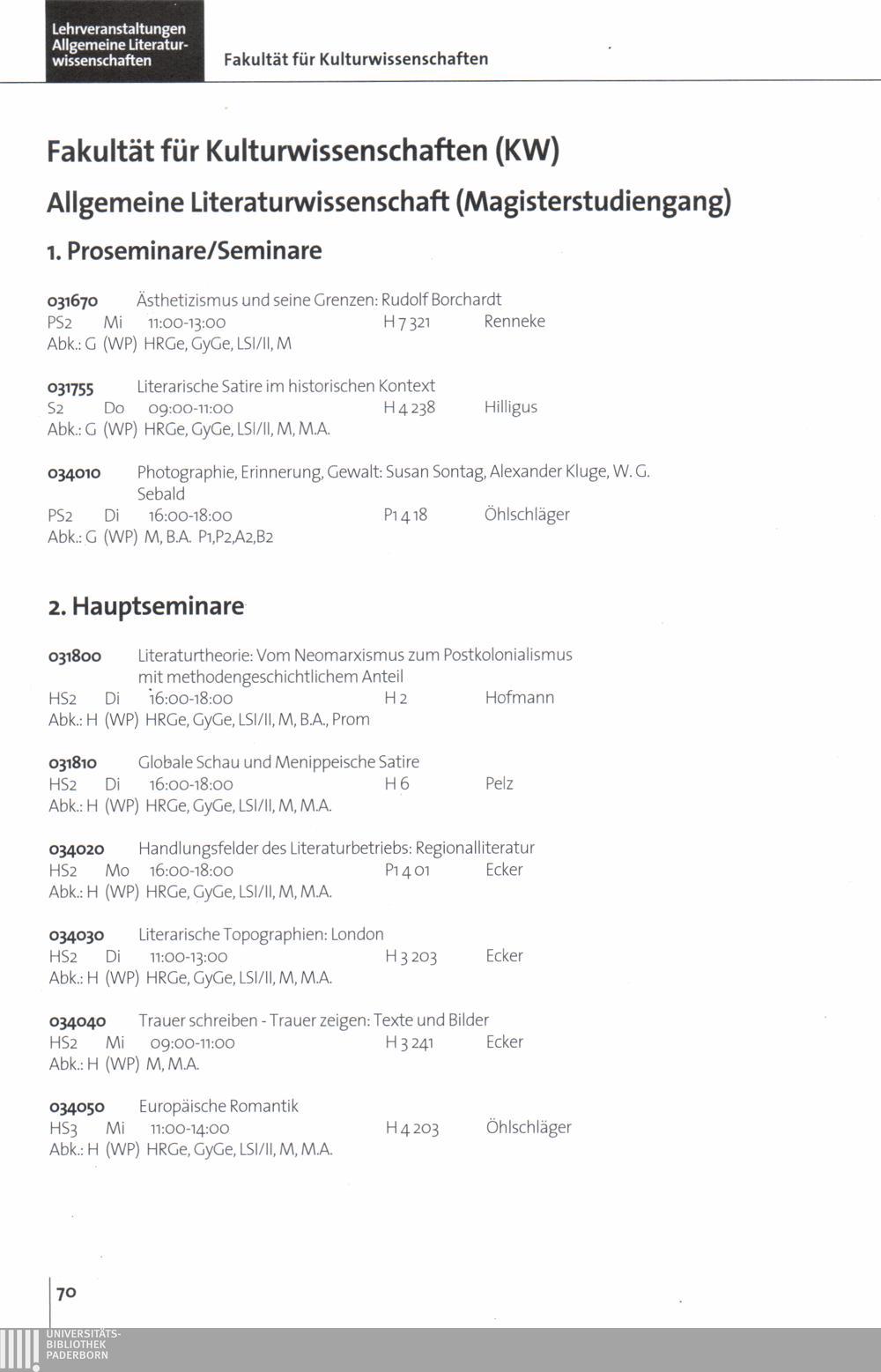 Personal- und Vorlesungsverzeichnis für die Universität Paderborn