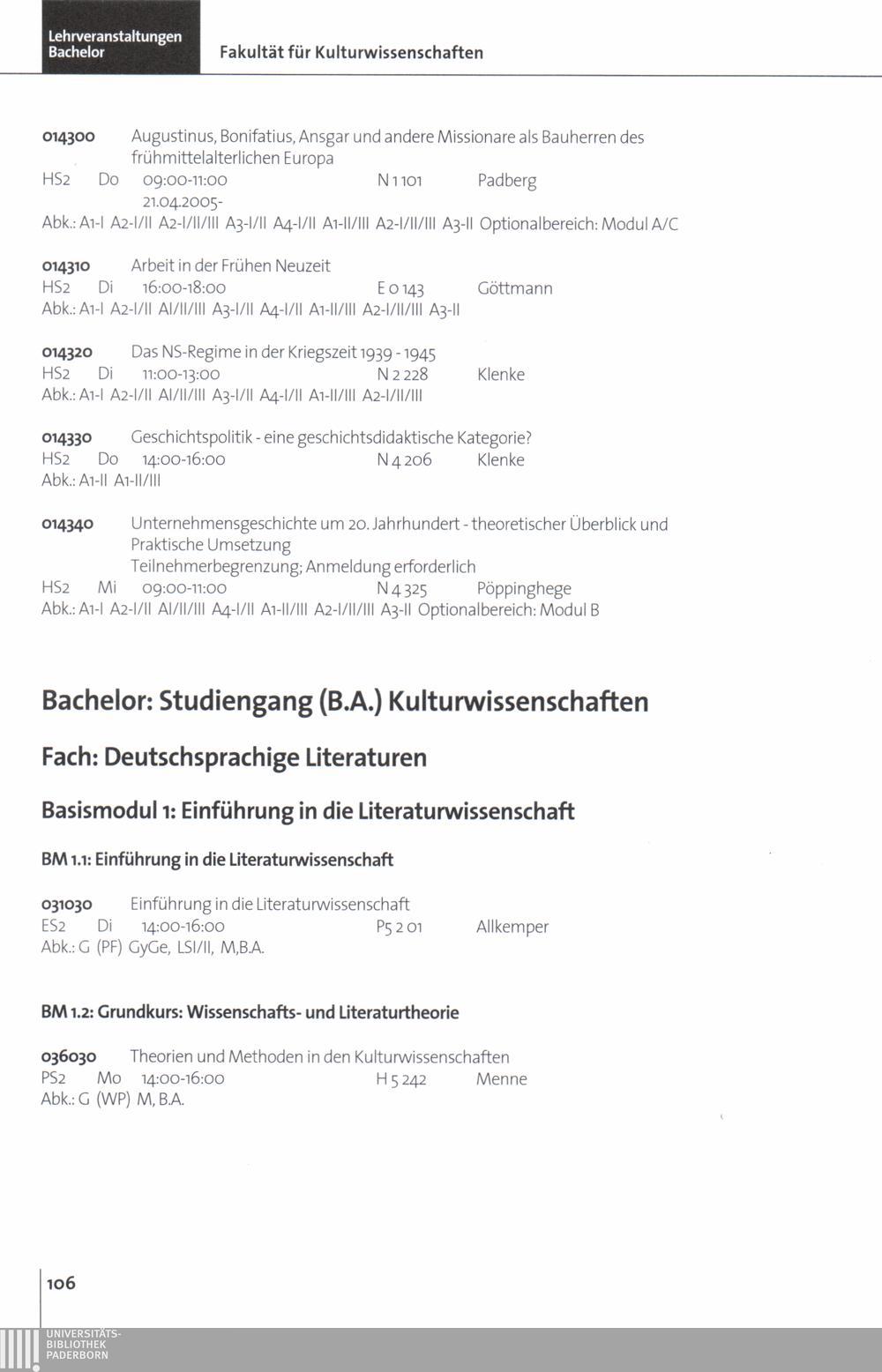 Personal- und Vorlesungsverzeichnis für die Universität Paderborn
