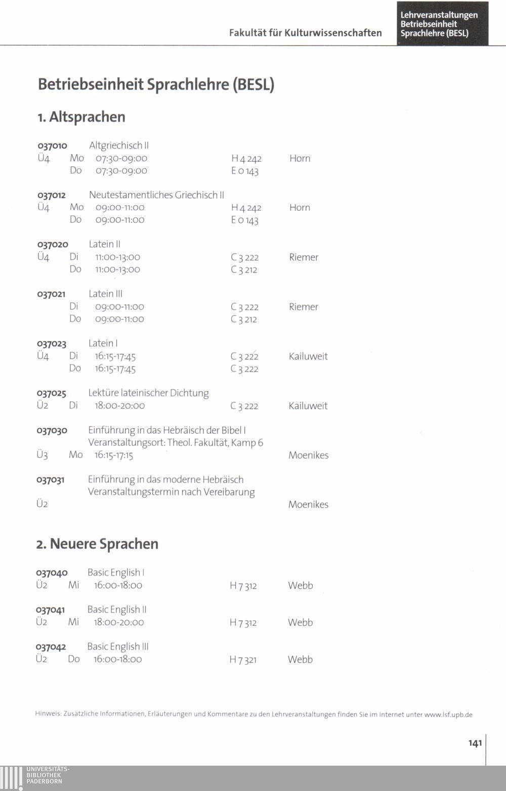 Personal- und Vorlesungsverzeichnis für die Universität Paderborn