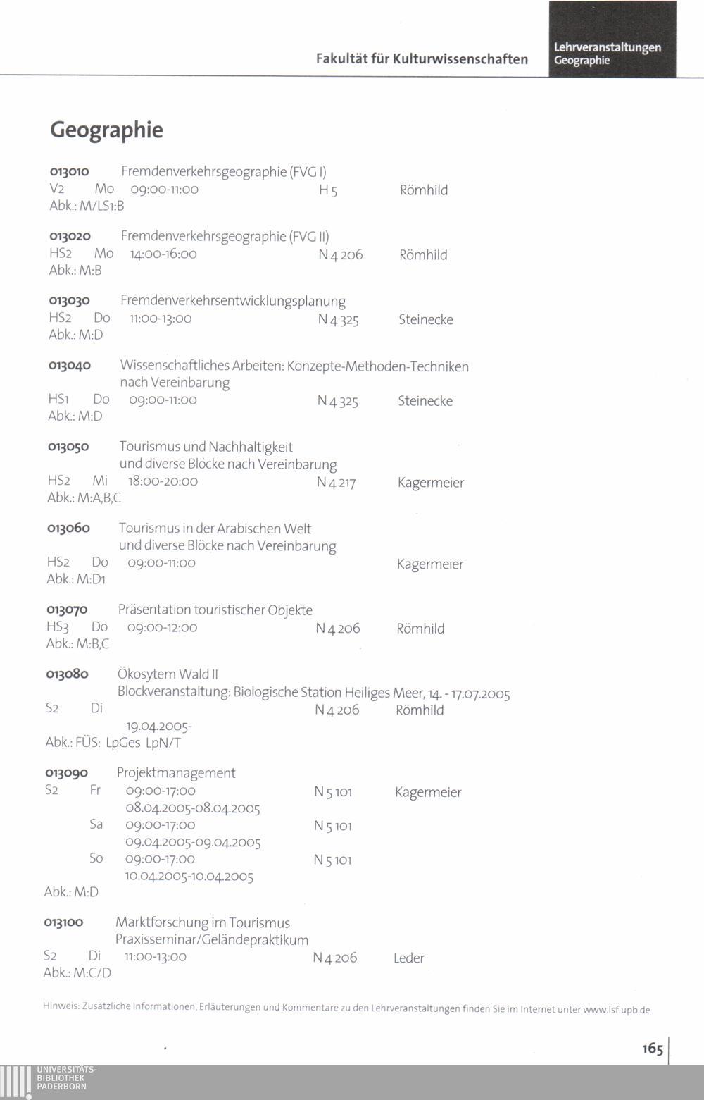 Personal- und Vorlesungsverzeichnis für die Universität Paderborn