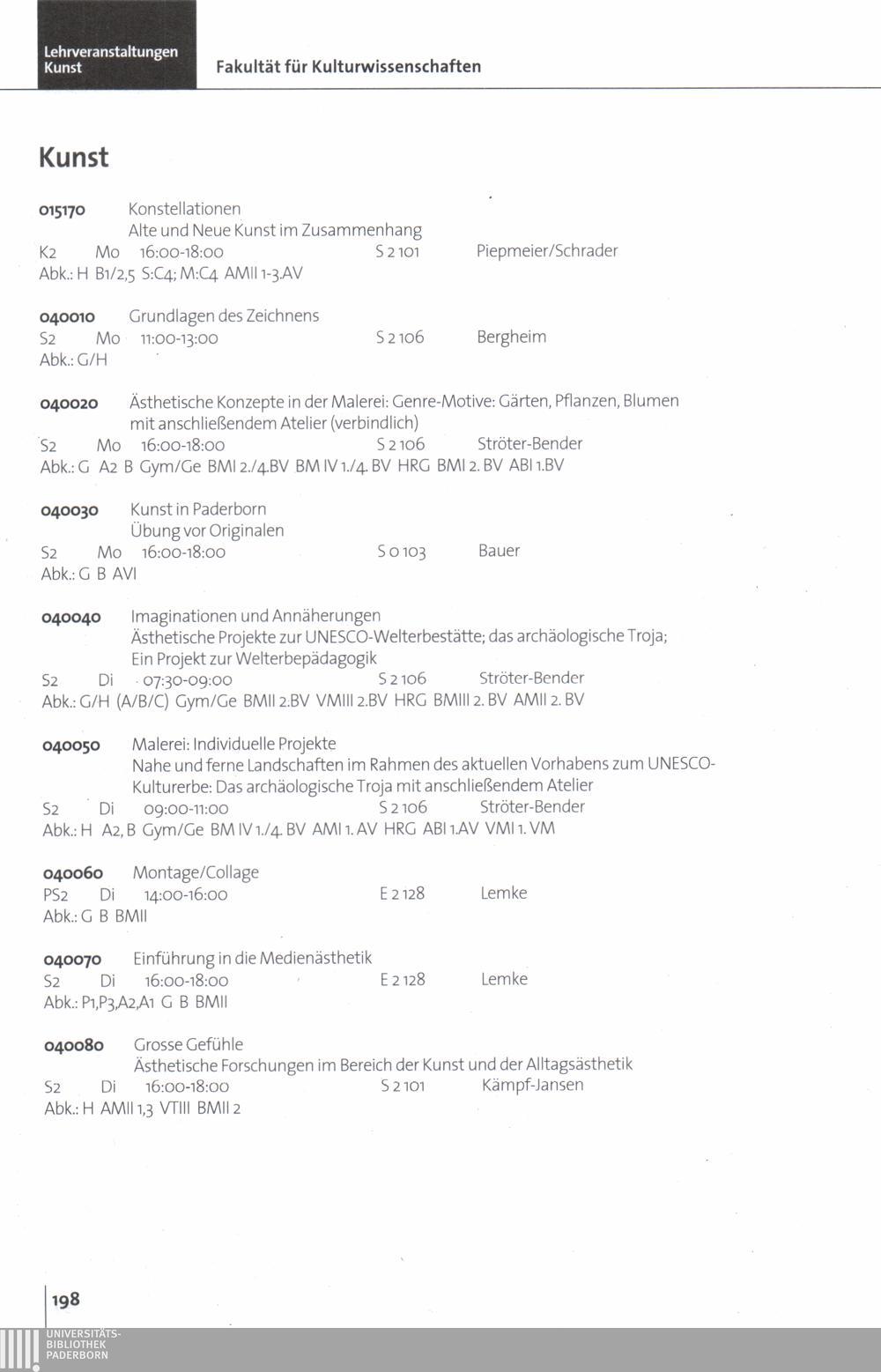 Personal- und Vorlesungsverzeichnis für die Universität Paderborn