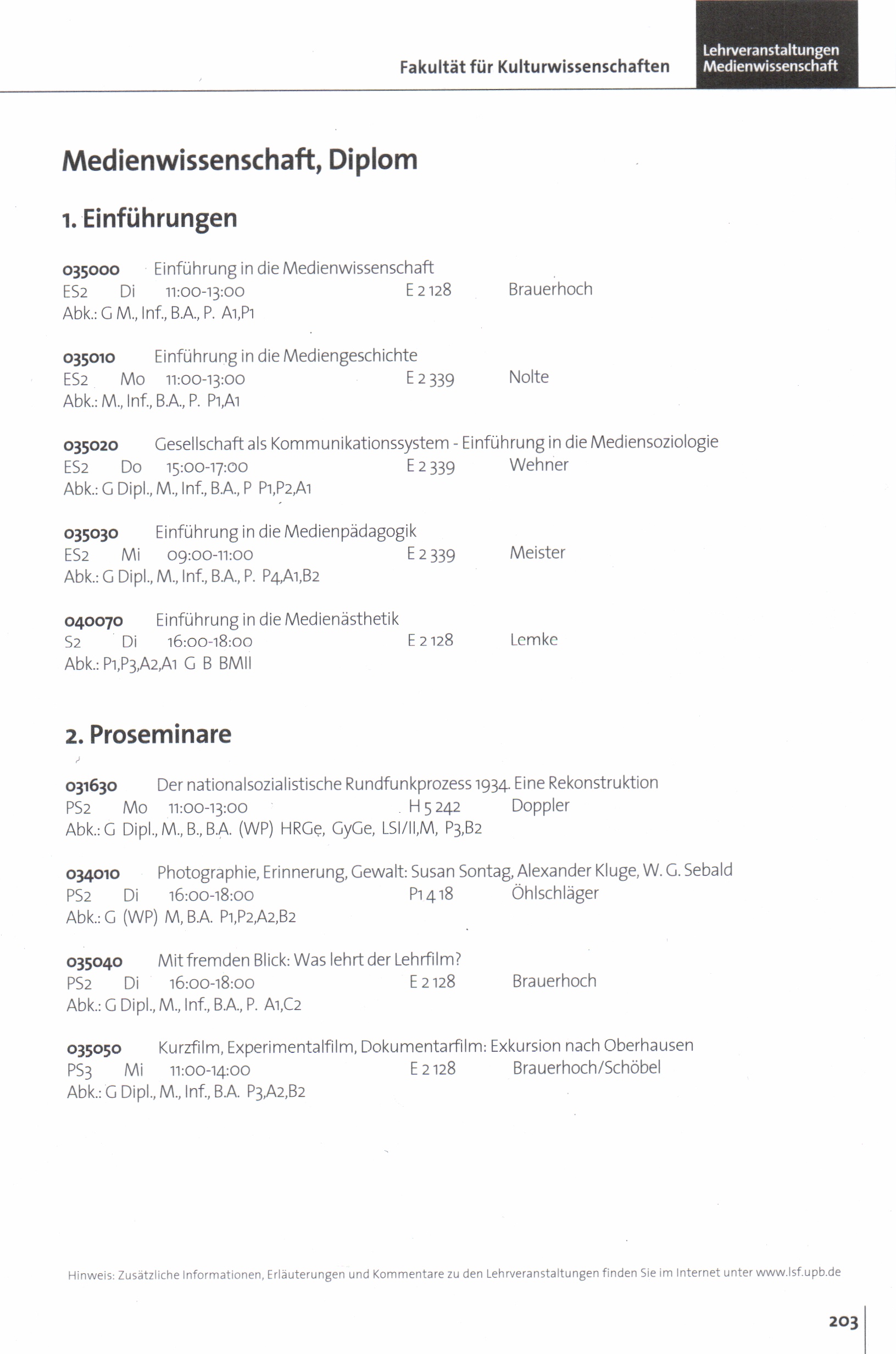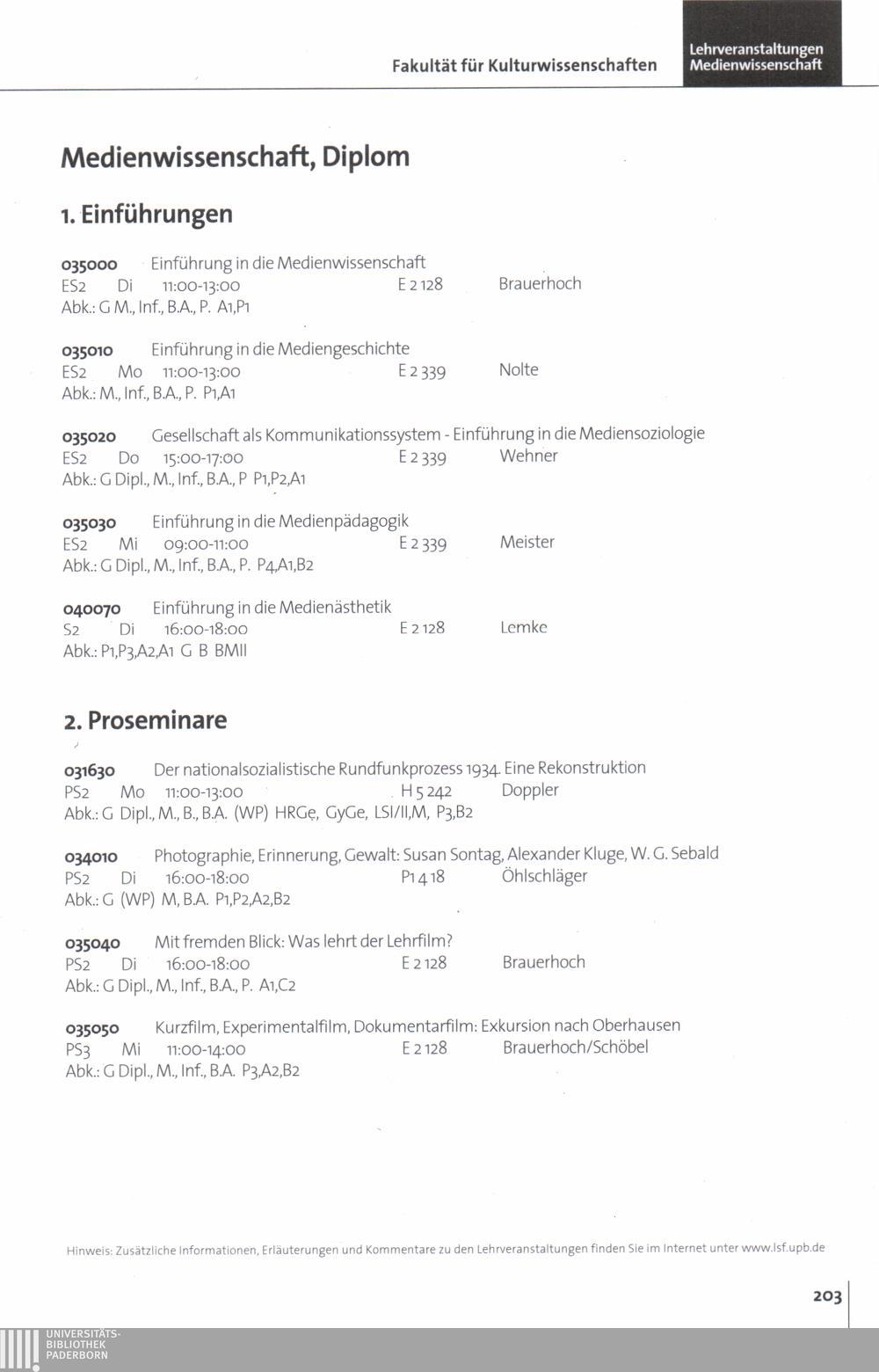Personal- und Vorlesungsverzeichnis für die Universität Paderborn