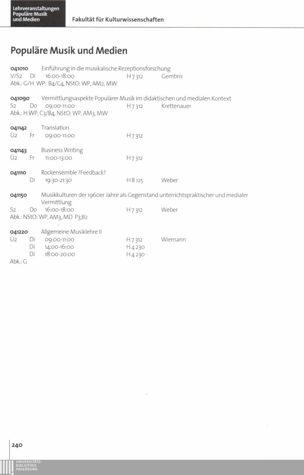 Personal- und Vorlesungsverzeichnis für die Universität Paderborn