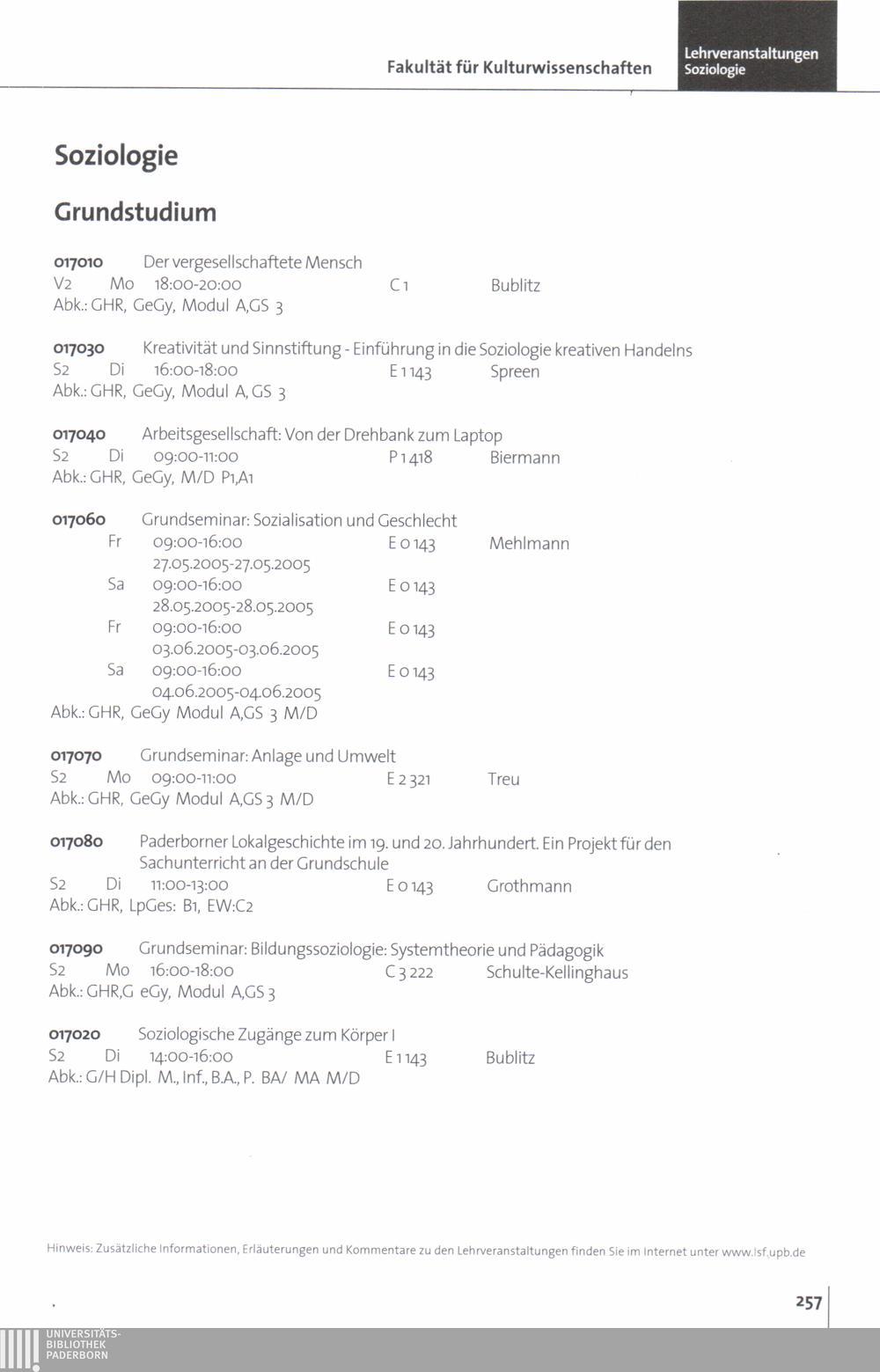 Personal- und Vorlesungsverzeichnis für die Universität Paderborn