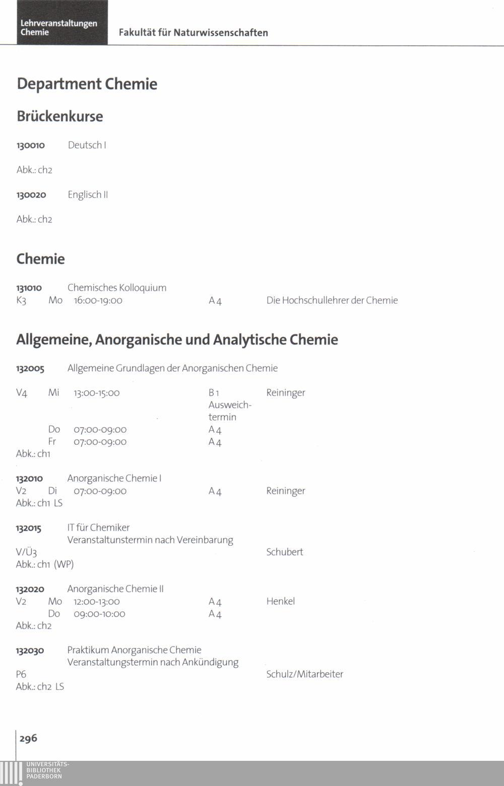 Personal- und Vorlesungsverzeichnis für die Universität Paderborn