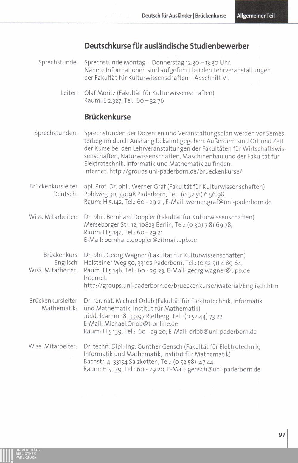 Personal- und Vorlesungsverzeichnis für die Universität Paderborn