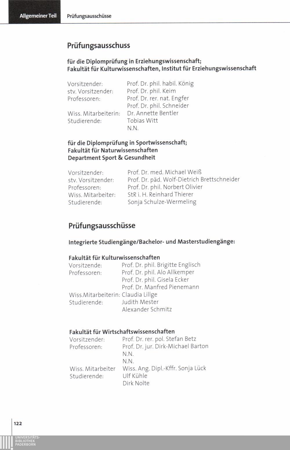 Personal- und Vorlesungsverzeichnis für die Universität Paderborn