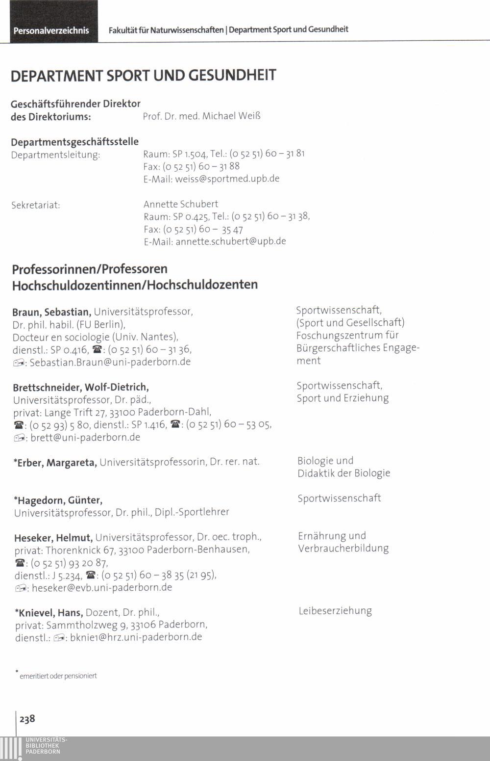 Personal- und Vorlesungsverzeichnis für die Universität Paderborn